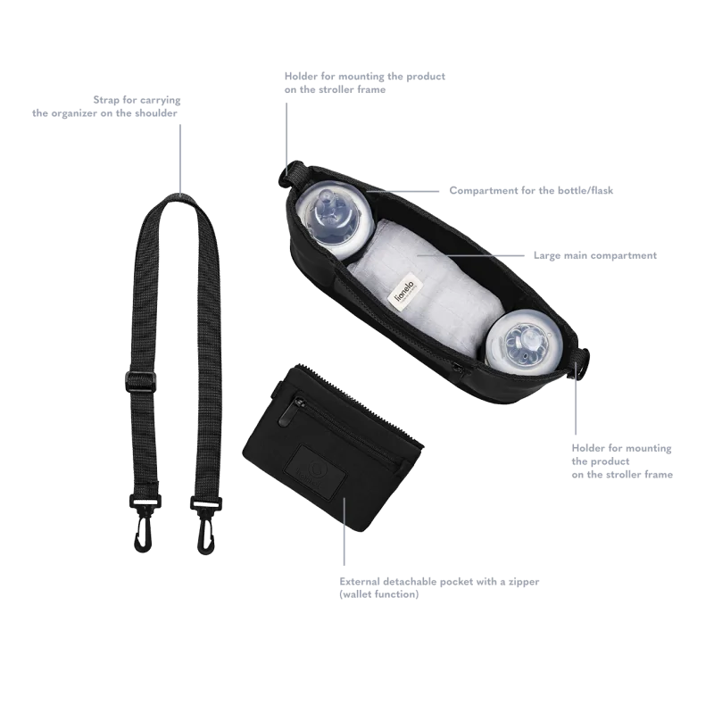 Nuimamos universalios sagtys leidžia pritvirtinti kuprinę prie bet kokio vežimėlio modelio.