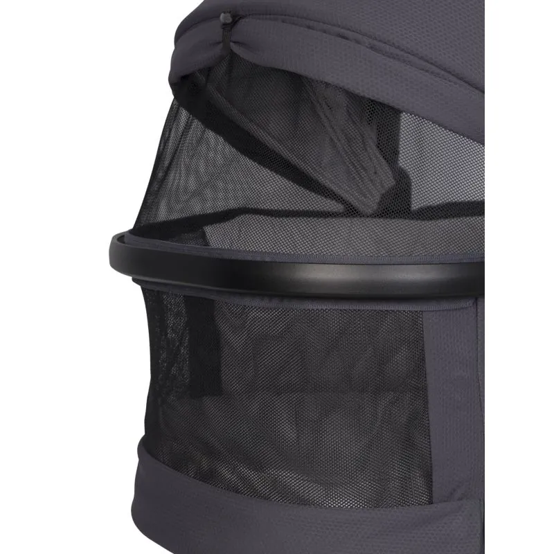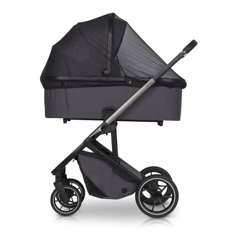 Turi atskirą apsaugą nuo lietaus, tinklelį nuo uodų, nešimo rankeną, stogelį nuo saulės.