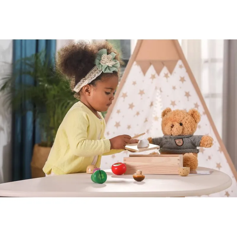 Medinis pjaustomas maisto rinkinys atrodo labai tikroviškai.