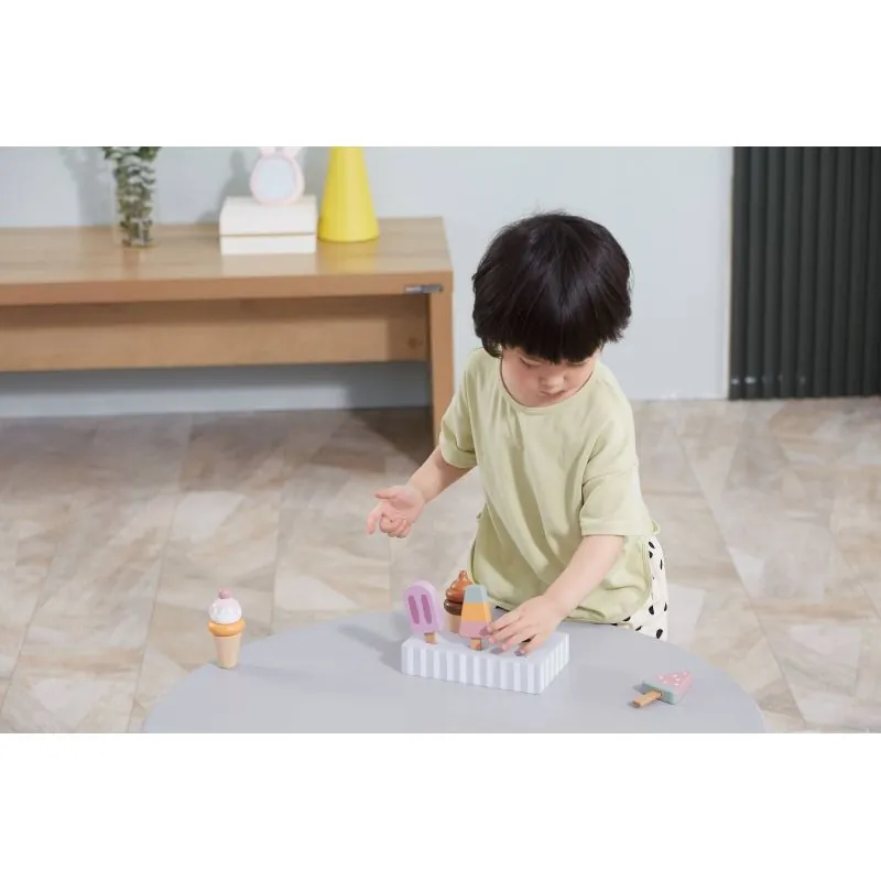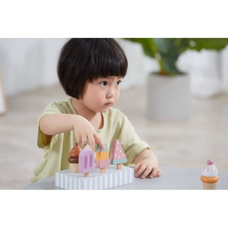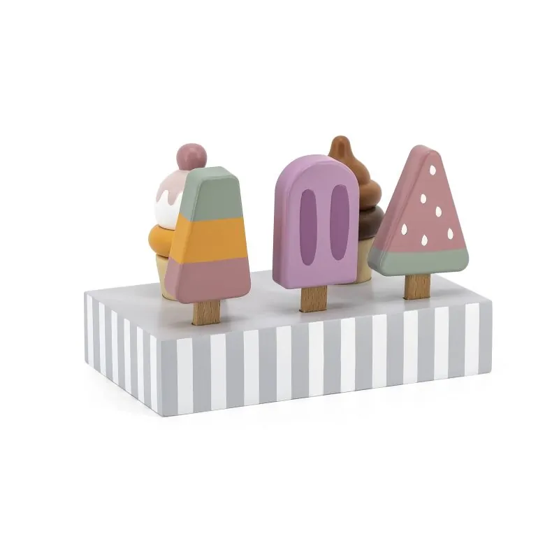 Mediniai spalvoti ledai VIGA PolarB su stovu Ice cream 5vnt, 44057