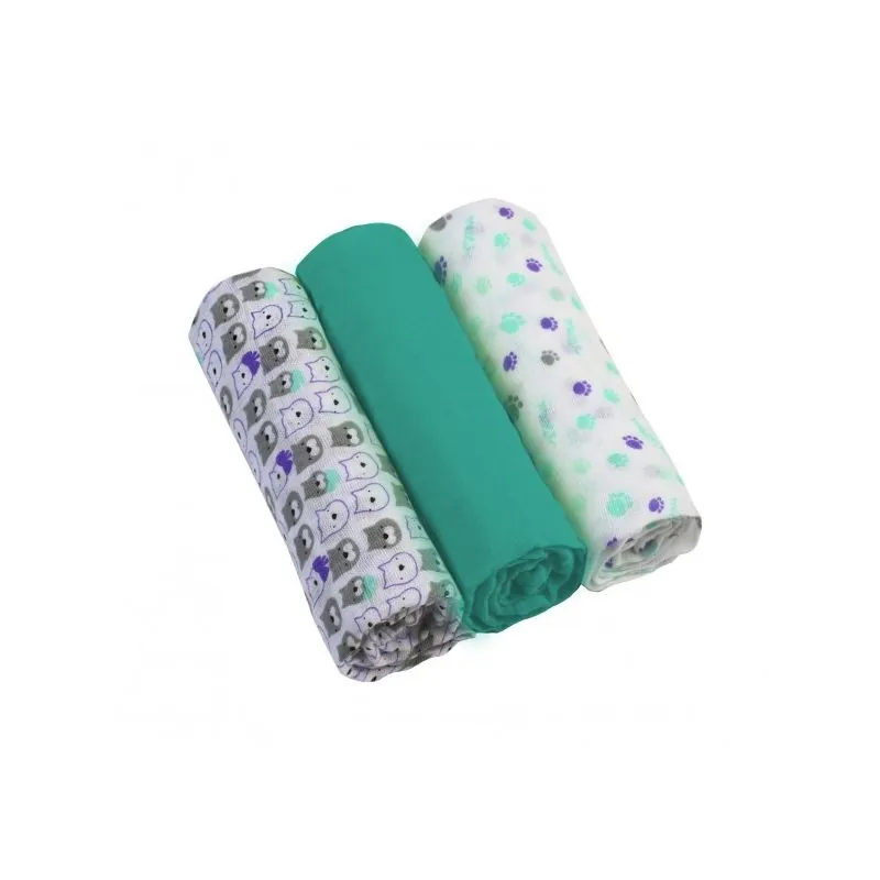Muslinas - tai dvisluoksnė „tetra“ 100% medvilnė, audinys labai minkštas liečiant ir praleidžia orą, todėl vystyklus galima naudoti nuo pat pirmųjų gyvenimo dienų - kaip gobtuvą, apklotėlį, vystymo paklotą, paklodę ar rankšluostį.