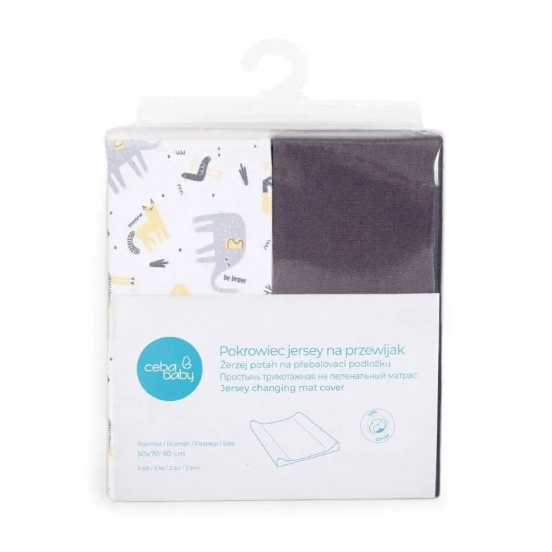 CebaBaby užvalkalai vystymo lentai, tamsiai pilkas - drambliukai (50x70-80), 2 vnt.