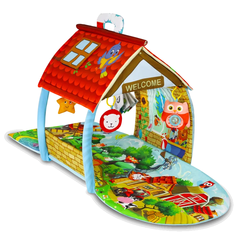 Dėl sulankstomų šonų ir sulankstomų stulpų kilimėlį galima paversti dideliu nameliu, todėl vaiko žaidimai tampa daug patrauklesni.
