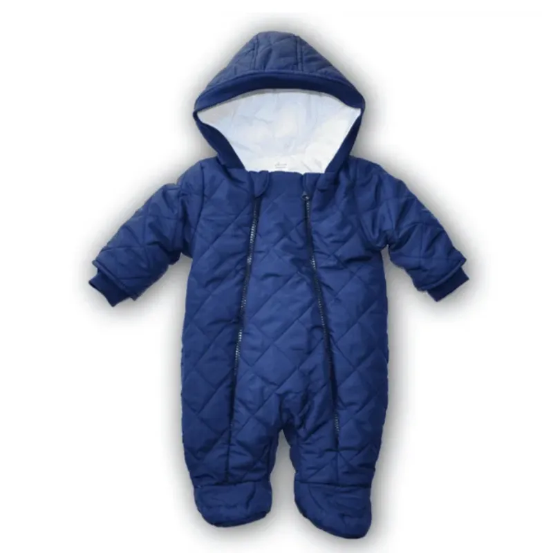 Pašiltintas 100% medvilnės vidaus kombinezonas kūdikiams su gobtuvu ir uždaromis kojytėmis.