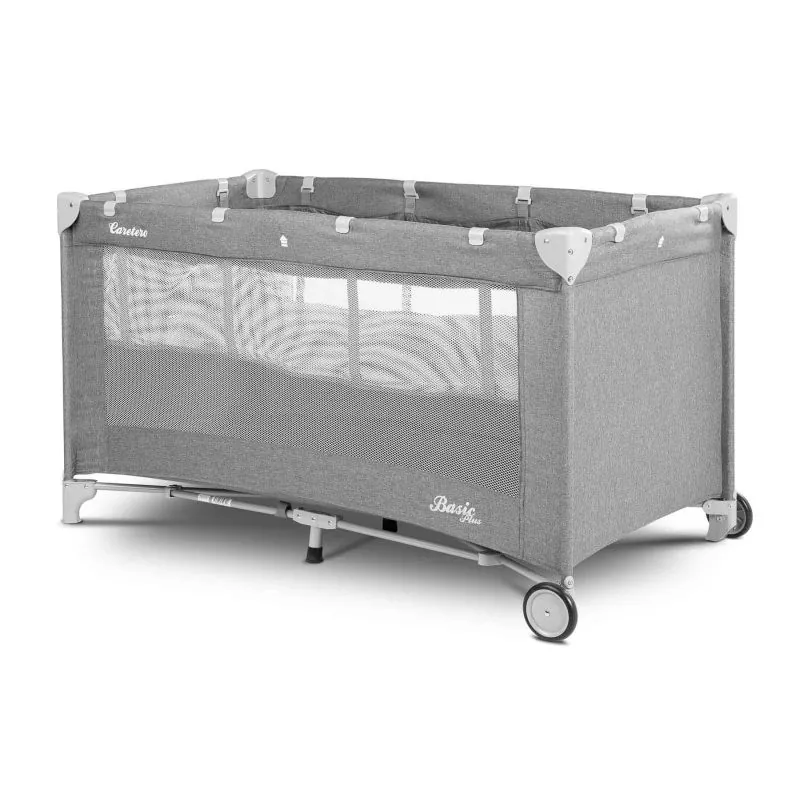 Stiprs, paredzēts bērniem līdz 15 kg. (otrais līmenis bērniem līdz 9 kg.)Ārējie izmēri: 125 x 66 x 75,5 cm.Divu līmeņu (zīdainis, līdz 6 mēnešiem, guļ augstāk, vēlāk noņemams otrais līmenis un lielāks bērns guļ zemākā līmenī)Komplektā ir ceļojumu matracītisAr rāvējslēdzēju atverama ieeja, bērns var pats iekāpt gultiņā-manēžā un izkāpt no tāsTīkliņveida malas nodrošina labu gaisa cirkulāciju un gaismuAr diviem riteņiem vieglākai transportēšanaiĒrts ceļojumu maiss ar rokturiem, piemērots ceļojumam vai glabāšanaiKompakti salokāmaGarantija 12 mēn.