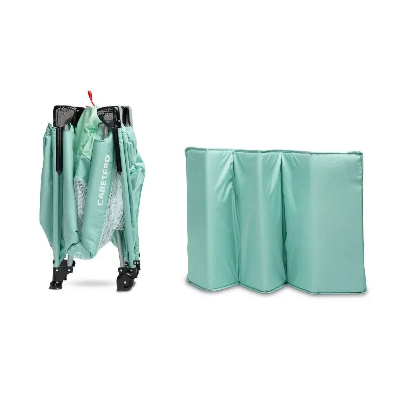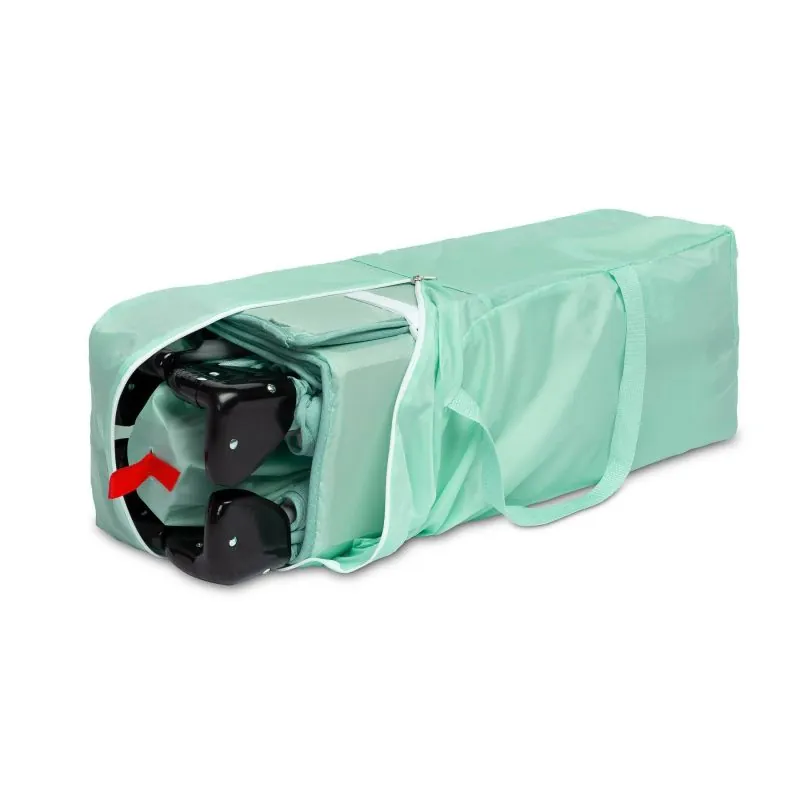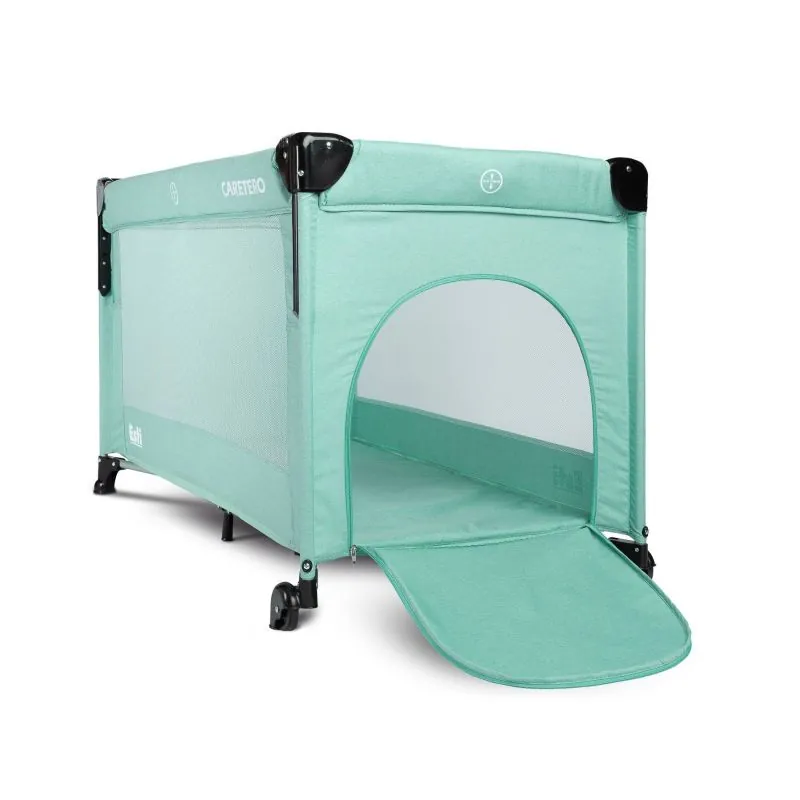 Lieliski piemērots lietošanai mājās vai ceļojumā;Divu līmeņu pamatne (mazulis guļ augstāk, vēlāk lielāks bērns guļ zemākā līmenī);Otrais līmenis piemērots mazuļiem līdz 9 kg vai līdz mazulis sāk sēdēt;Pamatne ar polsterējumu;Nolaižama sānu mala, lai manēžu varētu piebīdīt pie gultas;Vieglāk izņemt un ielikt mazuli gultiņā, jo sānu mala ir nolaižama;Durvis ar rāvējslēdzēju, bērns pats var iekāpt un izkāpt no gultiņas;Tīkliņveida malas nodrošina labu gaisa cirkulāciju;Lieli riteņi ar bremzēm;Ērta soma ar rokturiem, piemērota ceļojumiem vai uzglabāšanai;Salocīts aizņem maz vietas un ir kompakts;Izliekto ārējo izmēri: 126 x 65 x 74 cm;Salocīto izmēri: 21 x 21 x 74 cm;Atbilst Eiropas standartam: EN 716:2017-07.