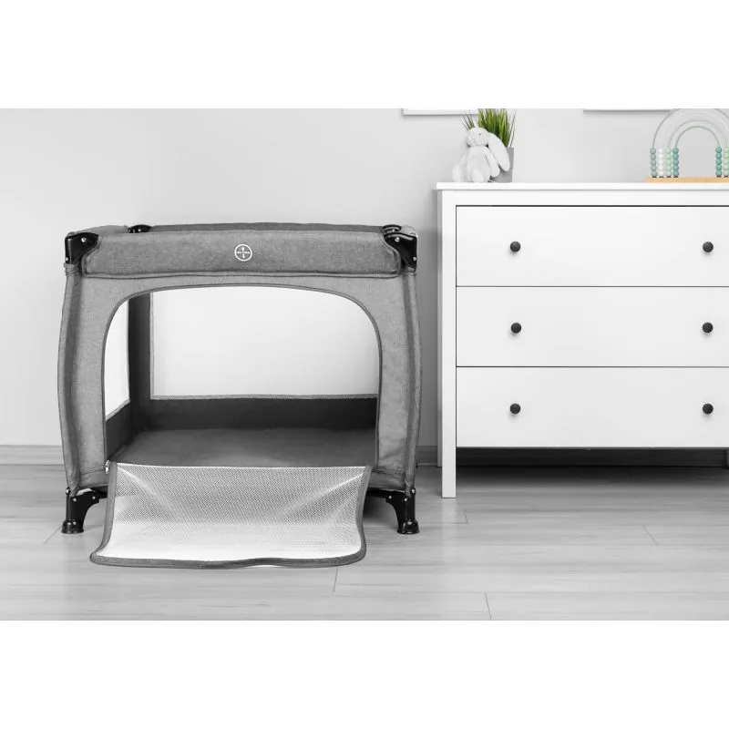 Ātrs un vienkāršs salocīšanas/izlocīšanas mehānisms.Izgatavots no augstas kvalitātes materiāliem.Komplektā divi gredzeni, lai bērnam būtu vieglāk piecelties.Sānu sienas no tīkla palīdz nodrošināt labu gaisa cirkulāciju un vienlaikus Jūs varat vērot savu bērnu.Sānu ieeja ar rāvējslēdzēju.Komplektā: transportēšanas soma, matracis un gredzeni vieglākai piecelšanaiParedzēts bērniem līdz 15 kg.
