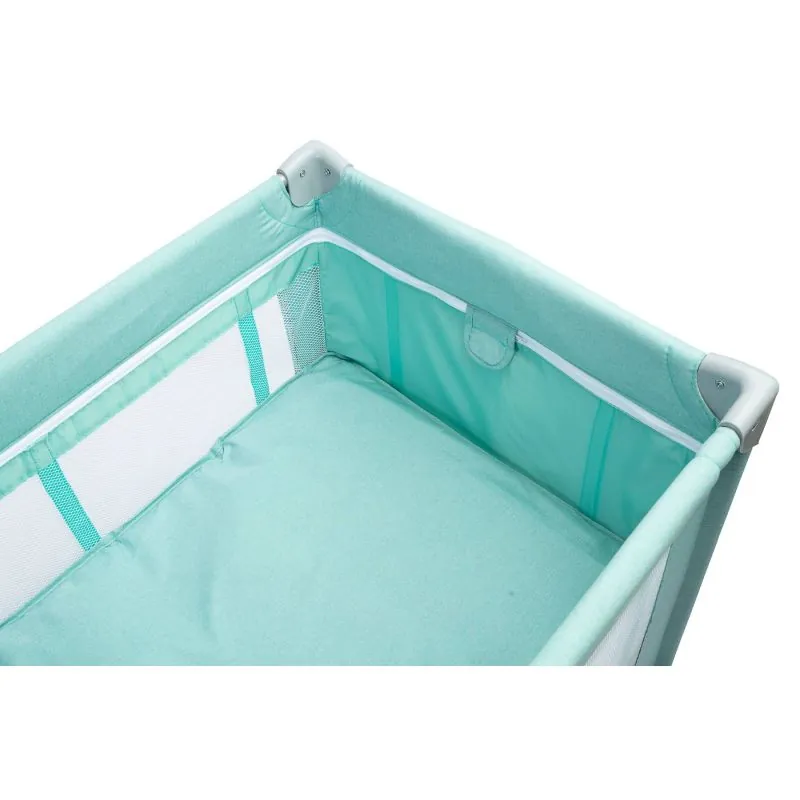 Stiprs, paredzēts bērniem līdz 15 kg. (otrais līmenis bērniem līdz 9 kg.)Ārējie izmēri: 125 x 66 x 75,5 cm.Divu līmeņu (zīdainis, līdz 6 mēnešiem, guļ augstāk, vēlāk noņem otro līmeni un lielāks bērns guļ zemākā līmenī)Komplektā ir ceļojumu matracisAr rāvējslēdzēju atverama ieeja, bērns var pats iekāpt gultiņā-manēžā un izkāpt no tāsTīkla malas nodrošina labu gaisa cirkulāciju un gaismuAr diviem riteņiem vieglākai transportēšanaiĒrta ceļojumu soma ar rokturiem, piemērota ceļojumam vai glabāšanaiKompakti salokāmaGarantija 12 mēn.
