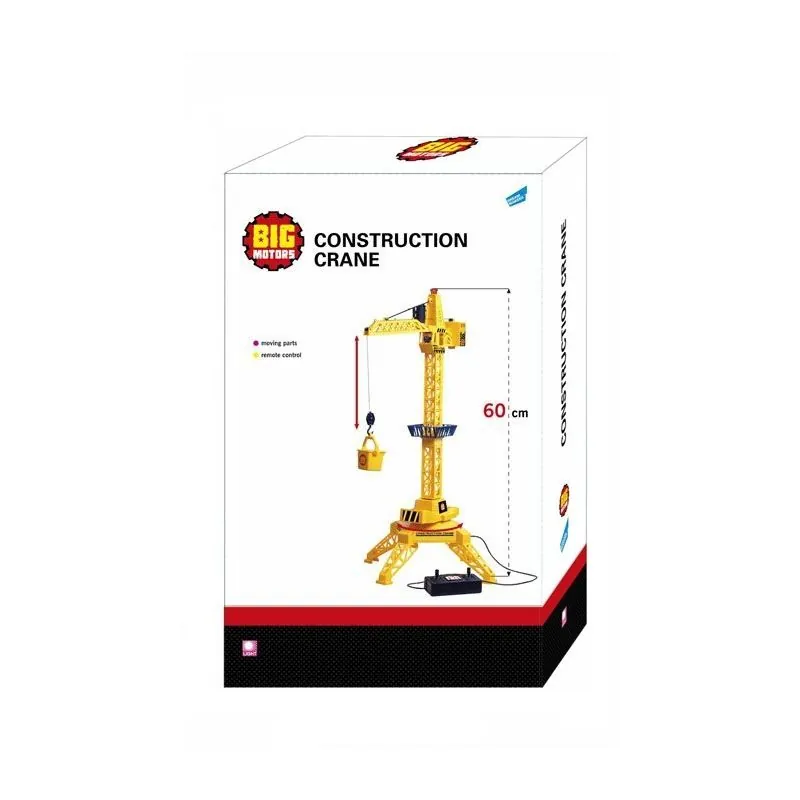 Ar tālvadības pulti vadāms celtnis;Pārvietojamais celtnis var pacelt vai nolaist kravu;Celtņa platforma griežas 360 grādos;Paceļot kravu, celtņa augšpusē mirgo sarkana gaisma;Salikta celtņa augstums ir 61 cm.;Rotaļlieta izgatavota no plastmasas;Komplektā ietilpst: 4 atbalsta kājas, 1 kravas grozs, 1 platforma, 1 strēle ar motoru, 1 strēles āķis, 1 vadības punkts;Iepakojuma izmērs: 32 x 25 x 10 cm.;Salikta rotaļlietas izmērs: 61 x 45 x 27 cm.;Tālvadības pultij nepieciešamas baterijas 2xAA;