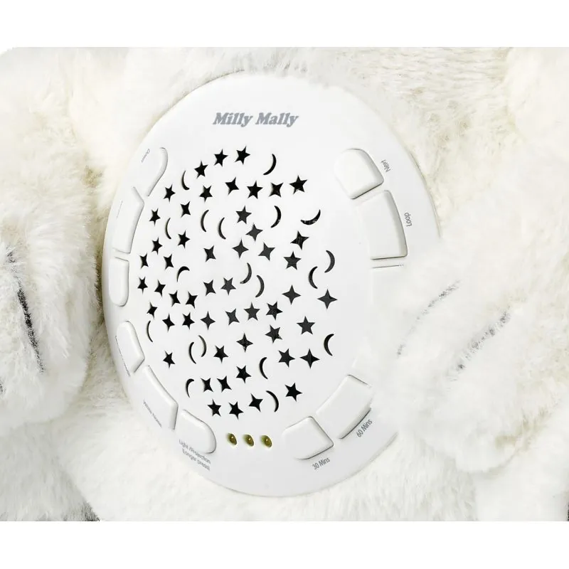 Milly Mally plīša lācis - projektors pārvērtīs jūsu bērna istabu par zvaigžņotām debesīm ar nomierinošām melodijām.