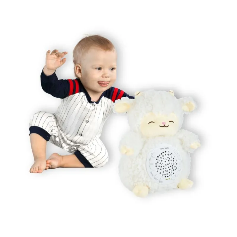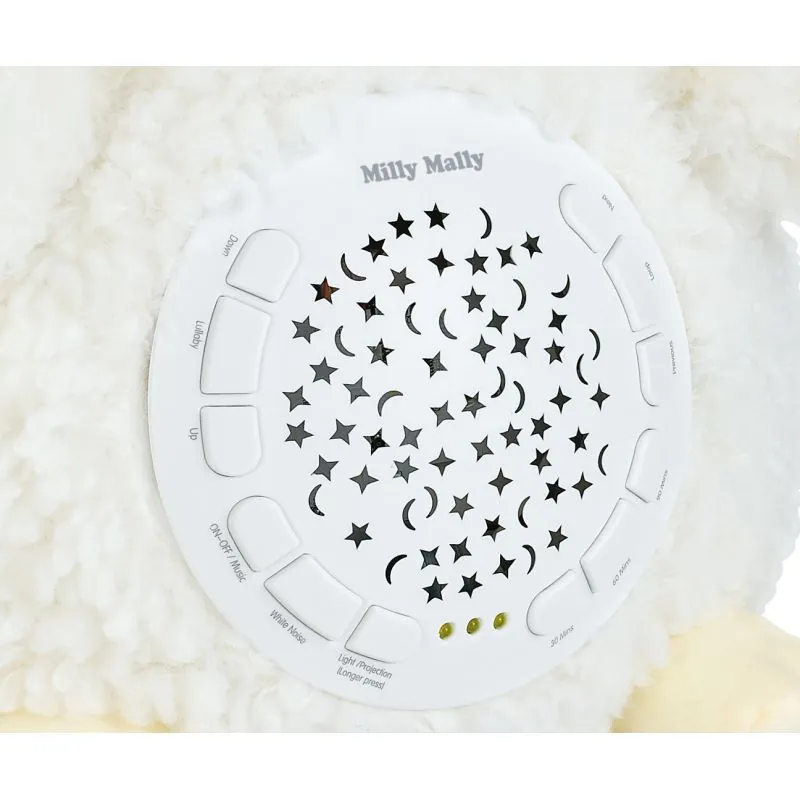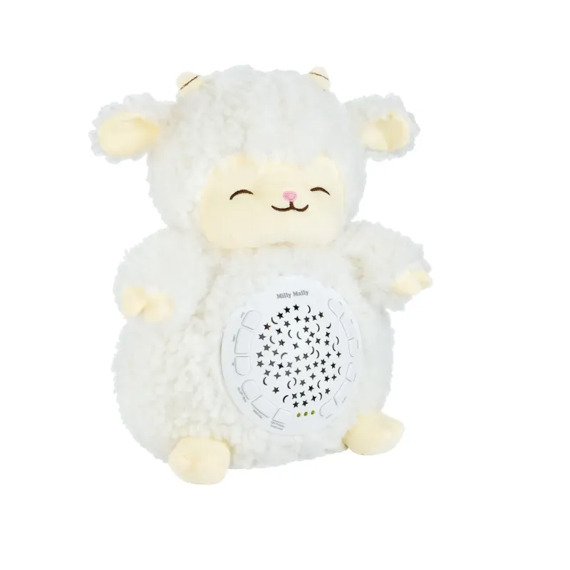 Milly Mally plīša aitiņa - projektors jūsu bērna istabu pārvērtīs zvaigžņotās debesīs ar nomierinošām melodijām.
