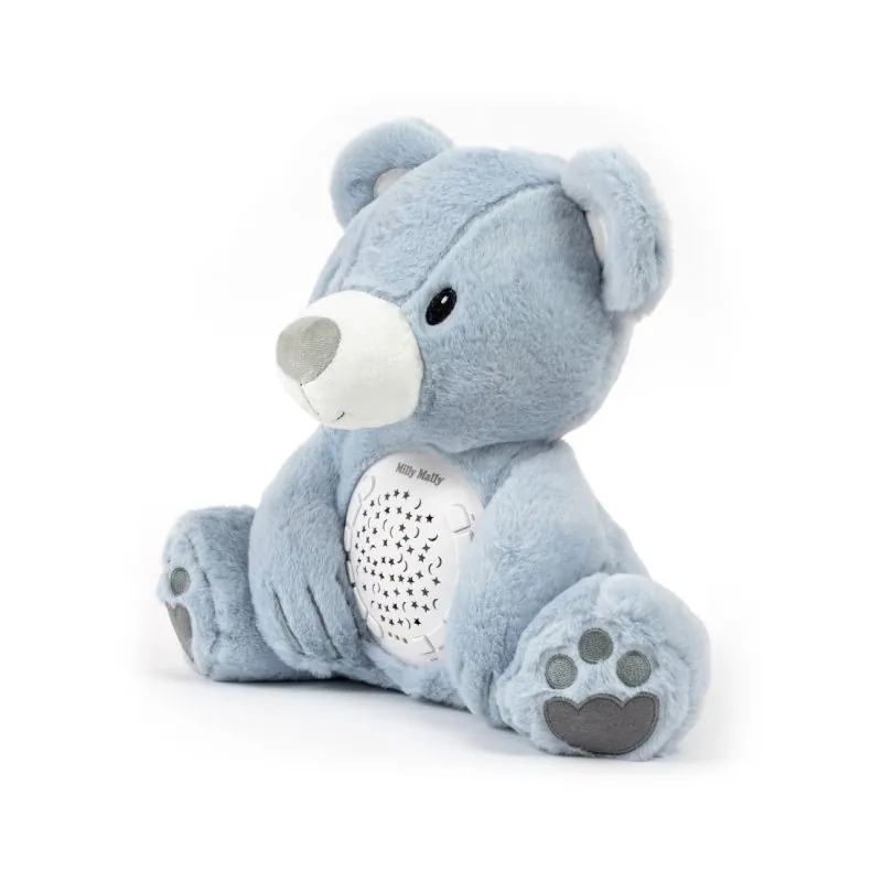 Milly Mally plīša lācis - projektors pārvērtīs jūsu bērna istabu par zvaigžņotām debesīm ar nomierinošām melodijām.