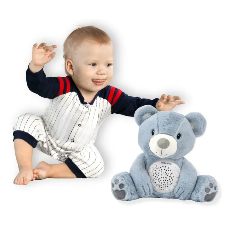 Milly Mally plīša lācis - projektors pārvērtīs jūsu bērna istabu par zvaigžņotām debesīm ar nomierinošām melodijām.