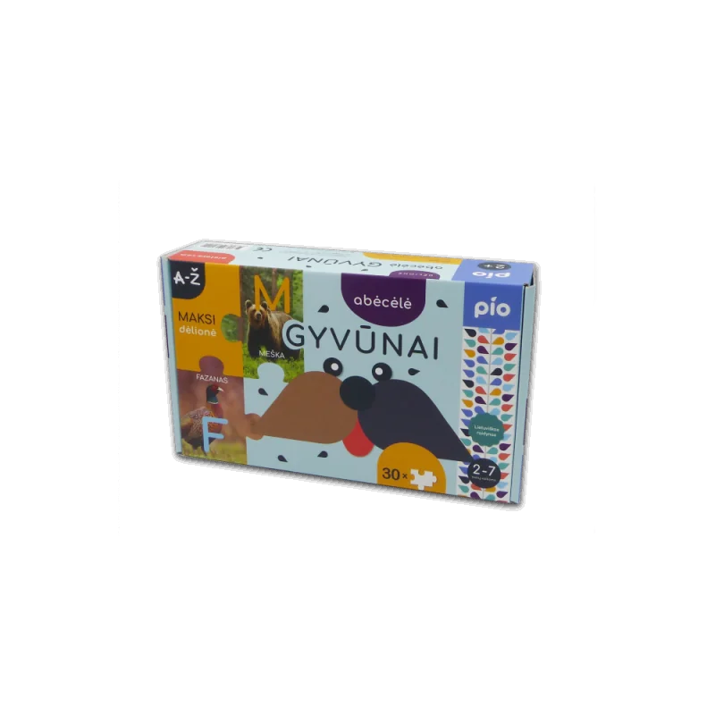 Alfabēta-puzle "Dzīvnieki" - tā ir lieliska metode mazulim viegli apgūt LATVIEŠU alfabētu un iepazīties ar dažādiem dzīvniekiem.Akcentējiet ne tikai dzīvnieka nosaukumu, bet arī burtu. Bērns ātri iegaumēs latviešu alfabētu, jo saistīs burtus ar noteiktu attēlu un vietu puzlē.Katrā alfabēta burtā atbilst dzīvnieks, kura nosaukums sākas ar to pašu burtu, piemēram: A- Zirgs.Puzlē attēlotas īstu dzīvnieku fotogrāfijas.Puzle attīsta uzmanību, domāšanu, valodu, izziņu, pacietību, telpisko uztveri, roku motoriku un acu koordināciju.Pārvērtiet mācīšanos par prieku!Ieteicams bērniem no 2 gadu vecuma.Kvalitatīva spilgta druka, biezas detaļas.Puzles kopējais izmērs: 45 x 57 cm.Viena detaļa izmērs: 7x11 cm.Kopā 30 detaļas.Kastes izmērs 21 x 30 x 7 cm.Ražots Lietuvā.