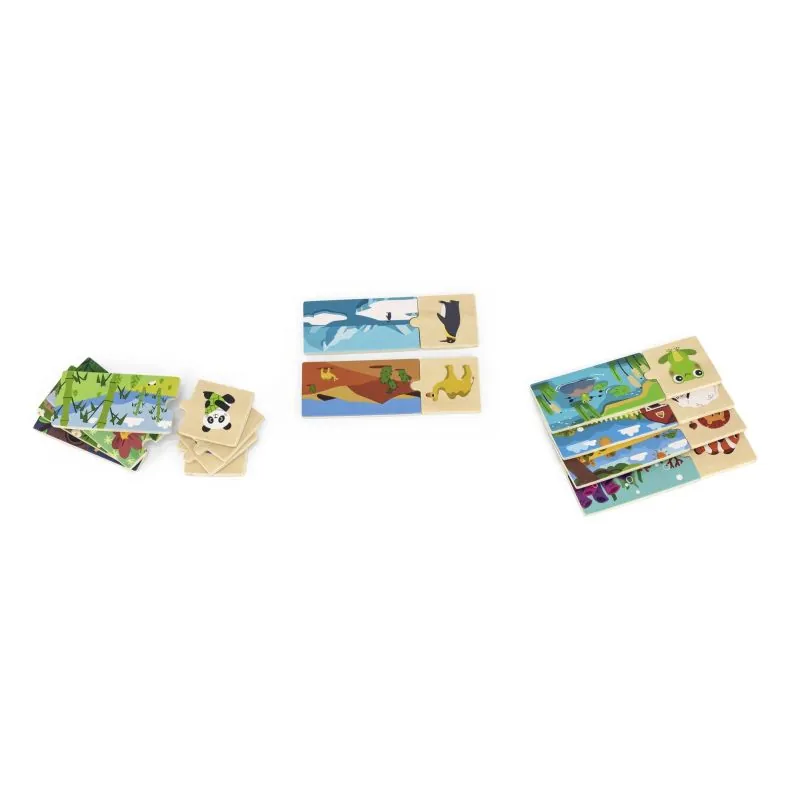 Kolekcijā ir 20 koka elementi ar dažādu dzīvnieku un to dabiskās dzīvotnes attēliem.