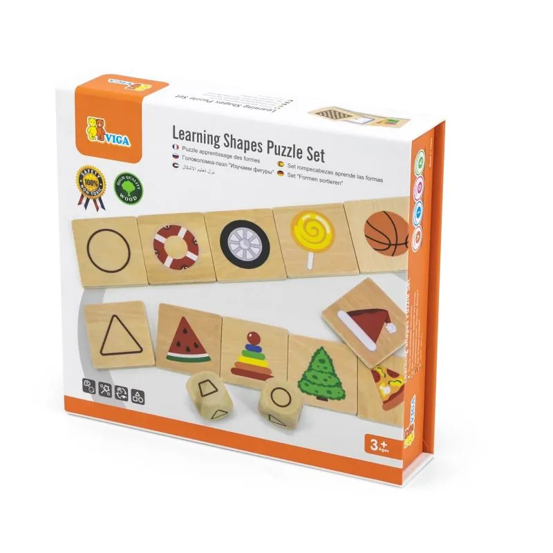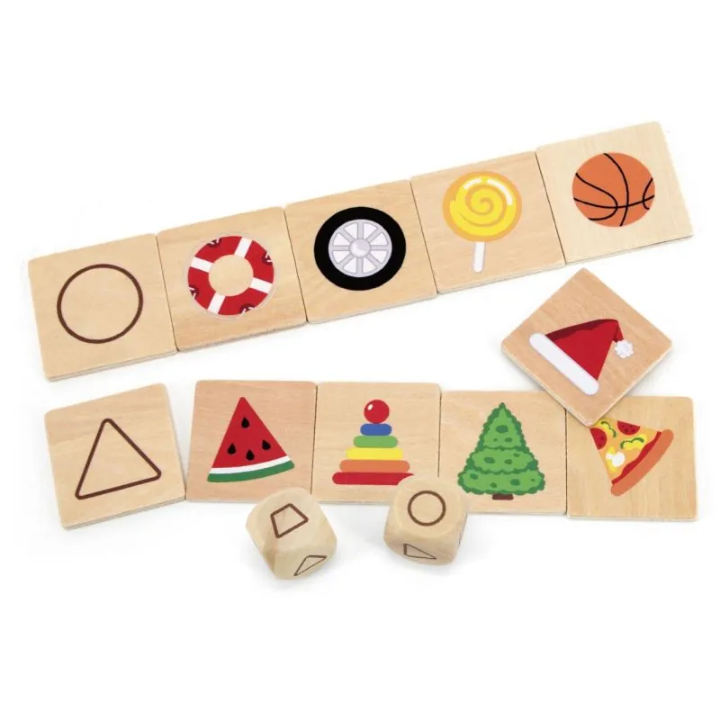 Ieteicams bērniem no 3 gadu vecuma;Spēle sastāv no 30 attēliem un 5 galvenajām formām;5 galvenās formas ir aplis, trapece, trīsstūris, kvadrāts un taisnstūris;Metiet kauliņu un no 30 attēliem tiek izvēlēts produkts, kas atbilst kauliņa formai, un ievietots rindā blakus galvenajai flīzei;Instrukcijā ir vairāki spēļu varianti (grūtāks un vieglāks);Puzle lieliski palīdzēs attīstīt mazuļa motoriku, kā arī plaukstu un acu koordināciju;Māca atpazīt ģeometrisko figūru krāsas un formas;Visi izstrādājumi ir izgatavoti no lakota koka un krāsoti ar netoksiskām krāsām;Atbilst drošības standartam EN71;