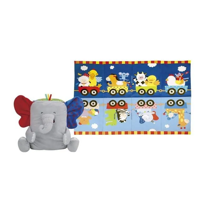 Pārnēsājamais paklājiņš - grāmata "Zilonis" kļūs par neaizstājamu bērna ceļojumu pavadoni.Grabējošas kājas, čīkstošas krāsainas ausis lieliski piemērotas jūsu mazuļa sensorisko spēju attīstīšanai. Atverot grāmatu, tiek parādīti dzīvnieki, kas ceļo ar vilcienu. Bērns iemācīsies dzīvnieku nosaukumus un krāsas. Turklāt, piknikos ar bērnu varat noņemt tās lapas un izklāt paklājiņu, un pats zilonis būs mīksta rotaļlieta.Zilonis izgatavots no augstas kvalitātes materiāliem. Tas ir mīksts un ērts, patīkams apskāvieniem.Grāmatu var mazgāt veļas mašīnā 30 ° C temperatūrā.Ieteicamais vecums: no 0 mēnešiem.