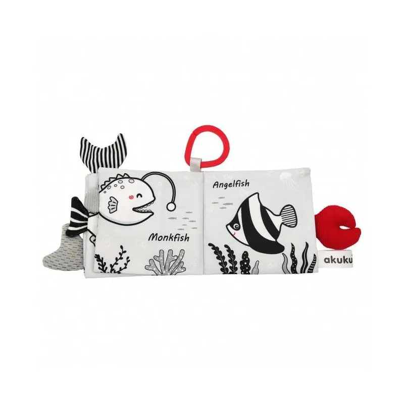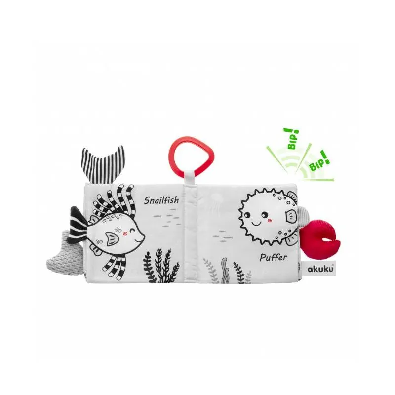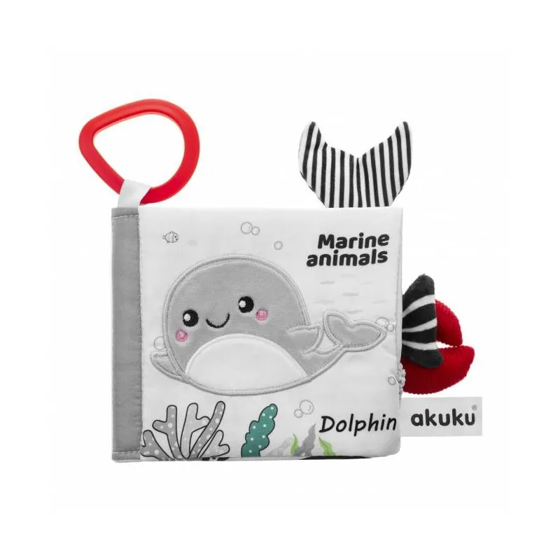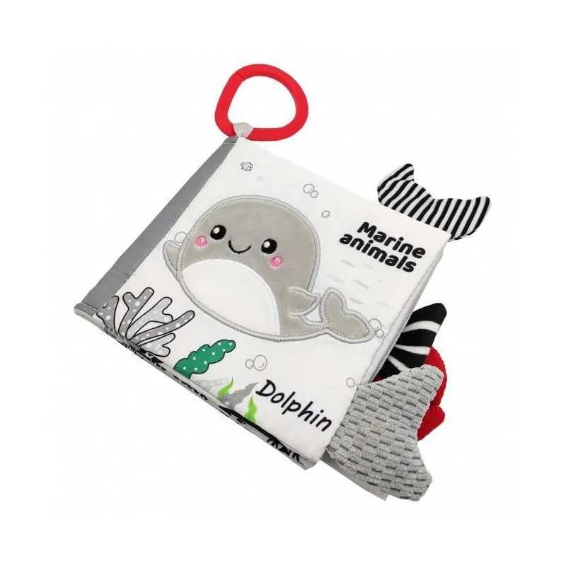 Jūras dzīvnieku sajūtu grāmatiņa ir lieliska rotaļlieta pašiem mazākajiem bērniem, kuri tikai sāk izpētīt pasauli.Tajā ir daudz pārsteigumu, kas ieinteresēs jūsu mazuli.Dažādas tekstūras un īpašības, piemēram, čīkstēšana, grabēšana, čaukstoši elementi un daudzi ieliktņi, stimulēs taustes sajūtu, kas ietekmē jūsu bērna pareizu un harmonisku attīstību.Speciāli izmantotās krāsas mazulim redzamas jau no dzimšanas, un rotaļlieta atbalsta mazuļa redzes, dzirdes un motoriskās koordinācijas attīstību.Praktisks āķis ļauj to piestiprināt pie ratiņiem vai gultiņas.Pateicoties smalkajam un patīkamajam materiālam, tas ir lieliski piemērots, lai mācītos satvert un atklāt interesantas skaņas un formas.