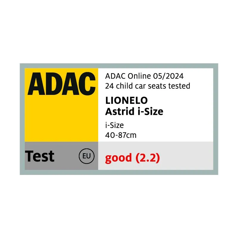 Astrid i-Size ir paredzēts uzstādīšanai pretēji braukšanas virzienam un ir aprīkots ar 3 punktu drošības jostām un regulējamu galvas balstu, lai nodrošinātu lielāku aizsardzību un komfortu.