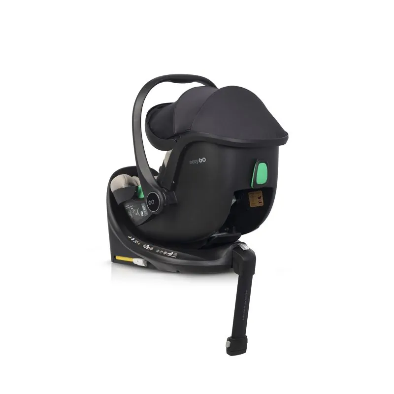 Automašīnas sēdeklītis paredzēts jaundzimušajiem līdz 13 kilogramiem vai 87 centimetru garumam un pagriežams ērtākai bērna ievietošanai/izņemšanai.