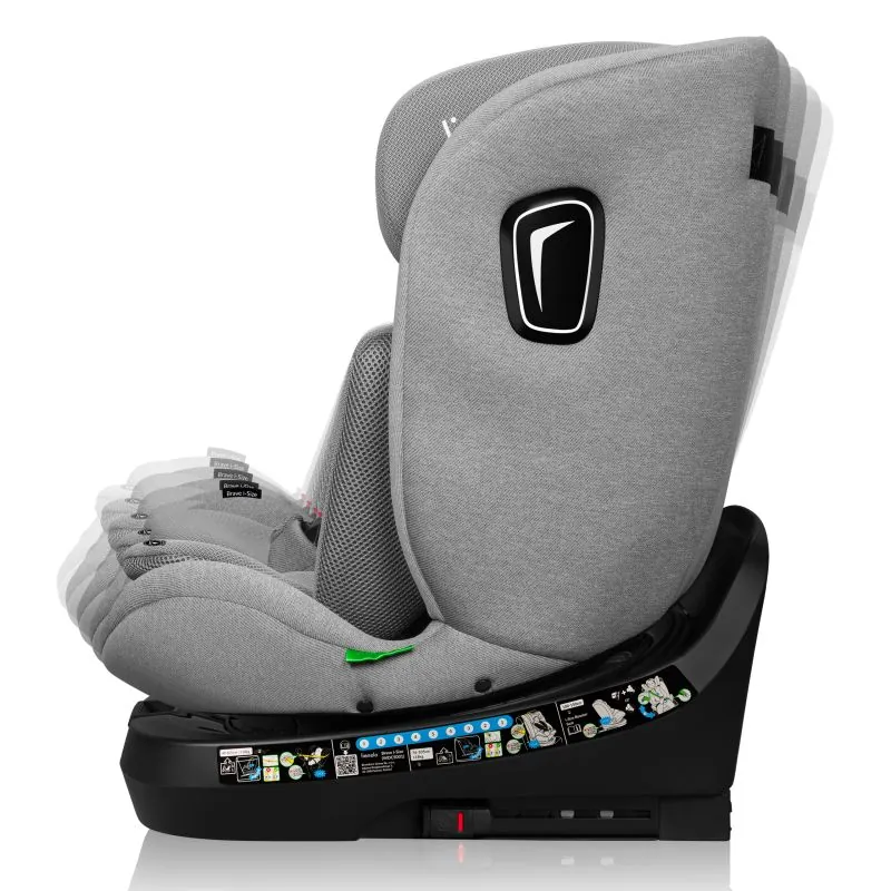 360° rotējošs IsoFix, kas ļauj sēdekli nostiprināt pret un braukšanas virzienā;