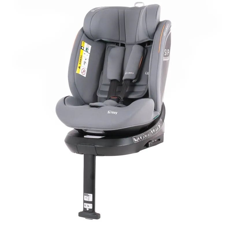 Automašīnas sēdeklis, kas griežas par 360°, neatvienojot vadotnes.Coletto Izzy Fix i-Size automašīnas sēdeklis ir izstrādāts saskaņā ar pašreizējiem, augstākajiem i-Size standarta noteiktajiem standartiem.Katram sēdekļa konfigurācijai tika veikti stingri sadursmes testi – priekšējās un sānu trieciena. Turklāt sadursmes testos tika izmantots augstākās paaudzes – Q tipa manekens, kas garantē precīzus mērījumus.Galvas balsts pieguļ bērna galvai, nodrošinot šīs ķermeņa daļas, kas ir visvairāk aizsargāta pret traumām, drošību.Uzlabota sānu aizsardzība un tērauda komponenti – Aizsardzību sānu trieciena laikā nodrošina papildu elementi sēdekļa sānu konstrukcijā un sānos, pastiprināti ar EPS polistirolu, kas absorbē spēku trieciena laikā.Paša sēdekļa konstrukcija ir pastiprināta ar tērauda elementiem, kas palielina visas konstrukcijas integritāti.Plašs augstuma diapazons – no 40 līdz 150 cm – tas ir universāls risinājums, kas jums kalpos daudzus gadus.Izturīga un ātra automašīnas sēdekļa uzstādīšana automašīnā ar ISOFIX sistēmu un stabilizējošu kāju, kas vienmērīgi sadala svaru pēkšņas bremzēšanas laikā. Pateicoties kājai, sēdeklis viegli griežas dažādos virzienos.Sēdeklis tiek uzstādīts pret braukšanas virzienu līdz 105 cm.Izturīgas jostas nodrošina maksimālu bērna drošību. Papildu polsterējumi nekairina bērna ādu, un neslīdošās spilventiņi nodrošina pareizu jostu pozīciju.Pastiprināta konstrukcija un lielas sānu plāksnes nodrošina augstu aizsardzības līmeni ceļu satiksmes negadījuma laikā.9 pakāpju galvas balsta regulēšana nodrošina, ka sēdeklis aug kopā ar jūsu mazuli.Galvas balsta regulēšana ir integrēta ar drošības jostām.Atzveltnes regulēšana 5 pozīcijās.Komplektā iekļauts īpašs jostas ieliktnis, kas nodrošina bērna pareizu mugurkaula pozīciju.