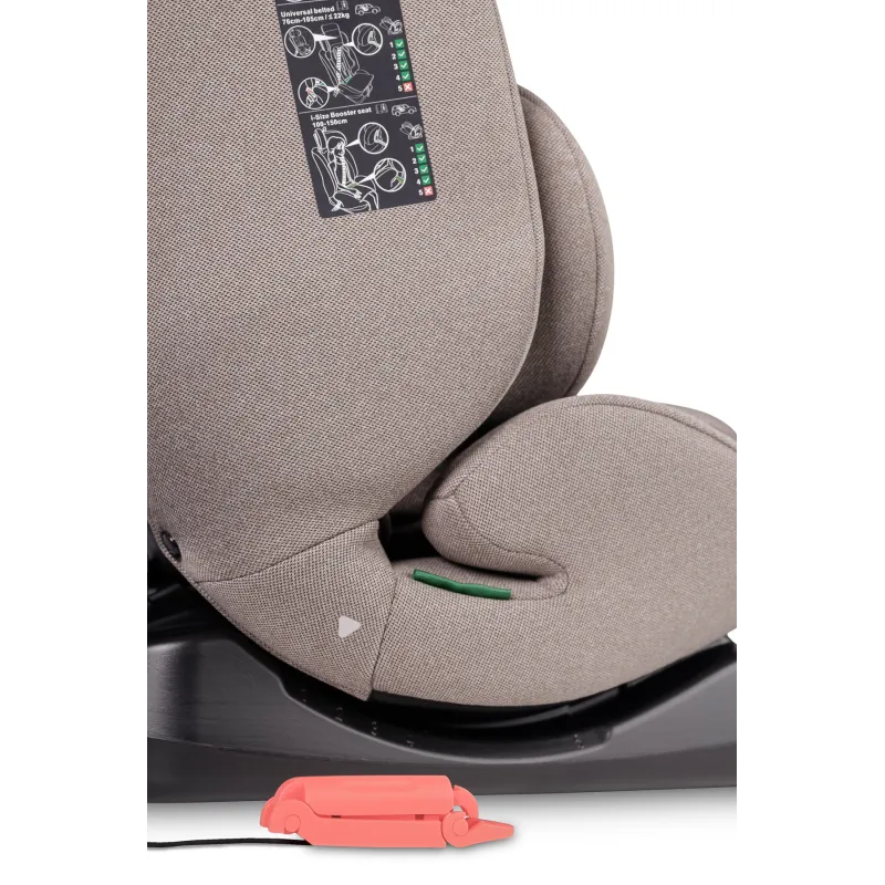 Daudzfunkcionāls automašīnas sēdeklis ar I-size drošības standartu bērniem no 40 līdz 150 cm.