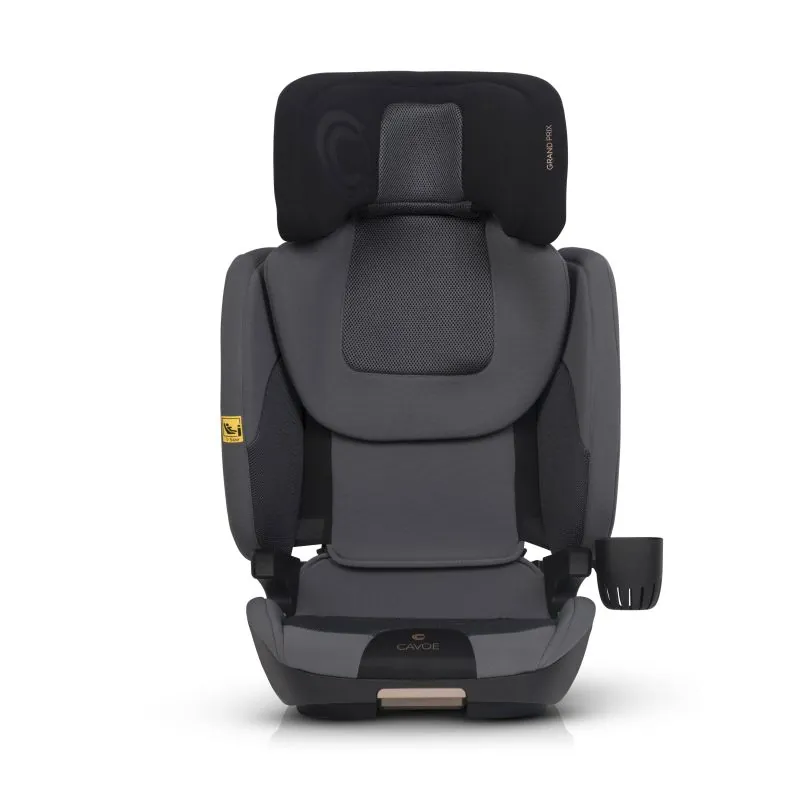 I-SIZE apstiprinājums bērniem no 100 līdz 150 cm augumam,ISOFIX stiprinājuma sistēma (viegla uzstādīšana, lielāka stabilitāte un drošība),gulēšanas funkcija (4 pakāpju sēdekļa slīpuma regulēšana),regulējams atzveltnes platums (no 42 līdz 55 cm),regulējams atzveltnes augstums (no 53 līdz 75 cm),enerģiju absorbējošas Memory Foam galvas balsts,liela plastmasas poliuretāna putas uz sēdekļa,Papildu priekšrocība – praktisks krūzīšu turētājs, kas var tikt piestiprināts abās sēdekļa pusēs, atkarībā no tā, kur automašīnā sēdeklis ir uzstādīts.Automašīnas sēdekļa GRAND PRIX apvalki ir izgatavoti no diviem dažādiem audumiem. Galvenais audums ir biezs un izturīgs pret nodilumu, kas nodrošina tā ilgmūžību. Tas tika izmantots visās vietās, kur sēdekļa montāžas un lietošanas laikā bija mehāniski bojājumi. Otra veida audumi – specializēts ventilēts 3D audums (tā sauktais šūnveida), nodrošinot atbilstošu gaisa cirkulāciju un neuzkarstot kā tradicionālie mēbeļu audumi. Tas tika izmantots anatomiski pielāgotās vietās bērna ķermenim: uz sēdekļa, atzveltnes un galvas balsta.Sēdeklis pārklāts ar speciālām, ļoti elastīgām, augsta blīvuma poliuretāna putām. Tā paša veida putuplasts tiek izmantots, piemēram, uz velosipēdu sēdekļiem. Tā priekšrocība – nesalipšanas efekts, kas saglabā savas īpašības ilgāk nekā standarta apvalku putas.
