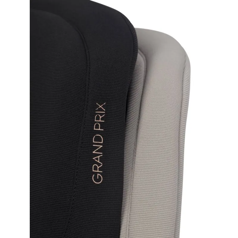 I-SIZE apstiprinājums bērniem no 100 līdz 150 cm augumam,ISOFIX stiprinājumu sistēma (viegla uzstādīšana, lielāka stabilitāte un drošība),gulēšanas funkcija (4 pakāpju sēdekļa slīpuma regulēšana),regulējams atzveltnes platums (no 42 līdz 55 cm),regulējams atzveltnes augstums (no 53 līdz 75 cm),enerģiju absorbējošas Memory Foam galvas balsts,liela plastmasas poliuretāna putas uz sēdekļa,Papildu priekšrocība – praktisks krūzīšu turētājs, kuru var piestiprināt abās sēdekļa pusēs, atkarībā no tā, kur automašīnā sēdeklis ir uzstādīts.Automašīnas sēdekļa GRAND PRIX pārvalki izgatavoti no diviem dažādiem audumiem. Galvenais audums ir biezs un izturīgs pret nodilumu, kas nodrošina tā ilgmūžību. Tas tika izmantots visās vietās, kur sēdekļa montāžas un lietošanas laikā bija mehāniski bojājumi. Otra veida audumi – specializēts ventilēts 3D audums (tā sauktais šūnveida), kas nodrošina pareizu gaisa cirkulāciju un neuzkarst kā tradicionālie mēbeļu audumi. Tas tika izmantots anatomiski pielāgotās bērna ķermeņa vietās: uz sēdekļa, atzveltnes un galvas balsta.Sēdeklis pārklāts ar speciālām, ļoti elastīgām, augsta blīvuma poliuretāna putām. Tā paša veida putuplasts tiek izmantots, piemēram, uz velosipēdu segliem. Tā priekšrocība – nesalipšanas efekts, kas saglabā savas īpašības ilgāk nekā standarta pārvalku putas.