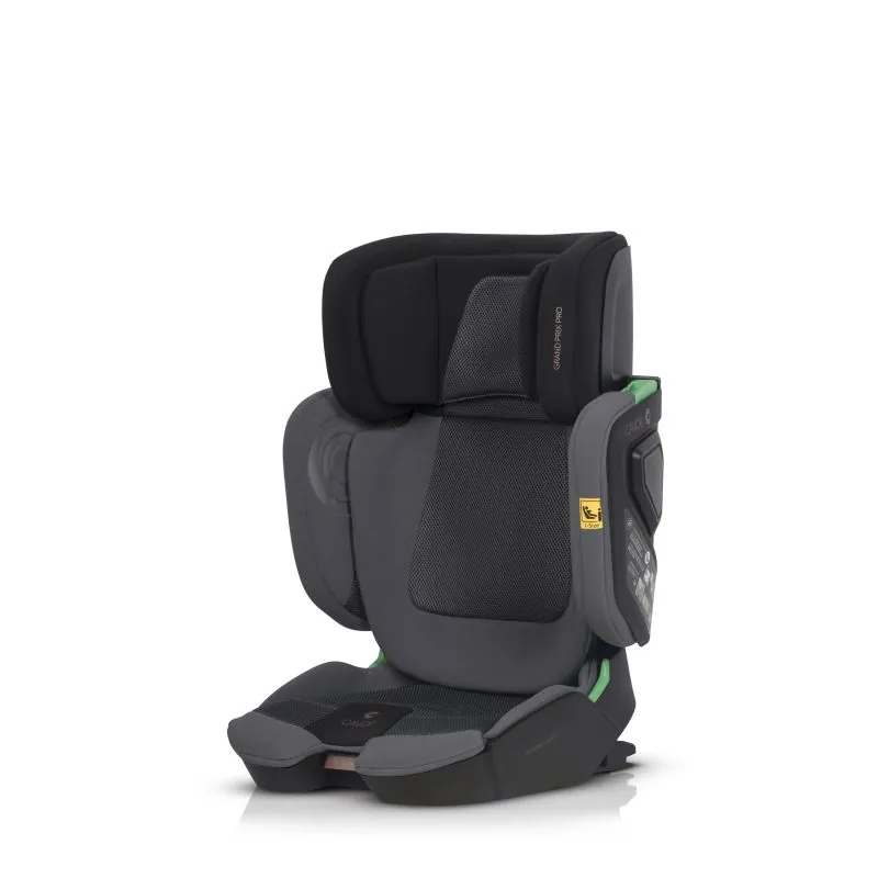 I-SIZE apstiprinājums bērniem no 100 līdz 150 cm augumam,ISOFIX stiprinājumu sistēma (viegli uzstādīt, lielāka stabilitāte un drošība),inovatīva saliekšanas funkcija,GRAND PRIX PRO sēdekļa atzveltne ir integrēta ar galvas balstu, tāpēc tās augstumu var regulēt ar vienu kustību. Atzveltne ir plata un, pateicoties īpašiem savienojumiem, pielāgojas bērna augumam. Atzveltne pielāgojas automašīnas sēdekļa slīpuma leņķim. Ja vēlaties nedaudz vairāk noliekt sēdekli (miega funkcija), pareizi iestatot ISOFIX savienojumus, varat to nedaudz atvilkt no autokrēsla atzveltnes.Enerģiju absorbējoši Memory Foam galvas balsti,poliuretāna putas uz sēdekļa.Autokrēsla GRAND PRIX apvalki ir izgatavoti no diviem dažādiem audumiem.Galvenais audums ir biezs un izturīgs pret nodilumu, kas nodrošina tā ilgmūžību. Tas tika izmantots visās vietās, kur sēdekļa montāžas un lietošanas laikā bija mehāniski bojājumi.Otra veida audumi – specializēts ventilējams 3D audums (tā sauktais šūnveida), kas nodrošina pareizu gaisa cirkulāciju un nesakarst kā tradicionālie mēbeļu audumi. Tas tika izmantots anatomiski pielāgotās bērna ķermeņa vietās: uz sēdekļa, atzveltnes un galvas balsta.