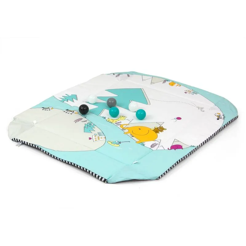 Pilnībā izklāta paklājiņa izmēri: garums: 110,5 cm, platums: 97 cm, augstums no paklājiņa līdz galvas spilvenam: 43,5 cm, galvas spilvena garums: 152,5 cm, galvas spilvena diametrs: 3 cm, galvas spilvena attālums: 75 cm x 85 cm.Paklājiņa ar salocītām malām izmēri: iekšējie izmēri: 78,5 x 64,5 cm, ārējie izmēri: 83 x 71 cm, malas augstums: 17 cm, augstums no paklājiņa līdz galvas lentai: 48 cm.Bumbiņas diametrs: 5,5 cm;Svars: 1,68 kg;Iepakojuma izmērs: augstums: 7 cm, platums: 66 cm, garums: 81 cm;Svars ar iepakojumu: 2 kg.Izmēri: 115x110x53cm