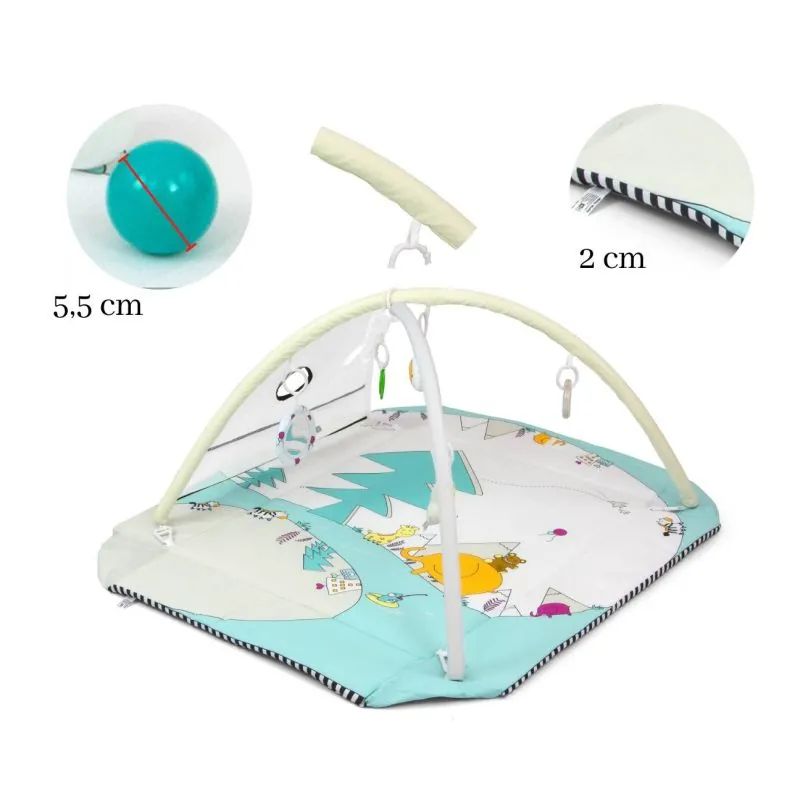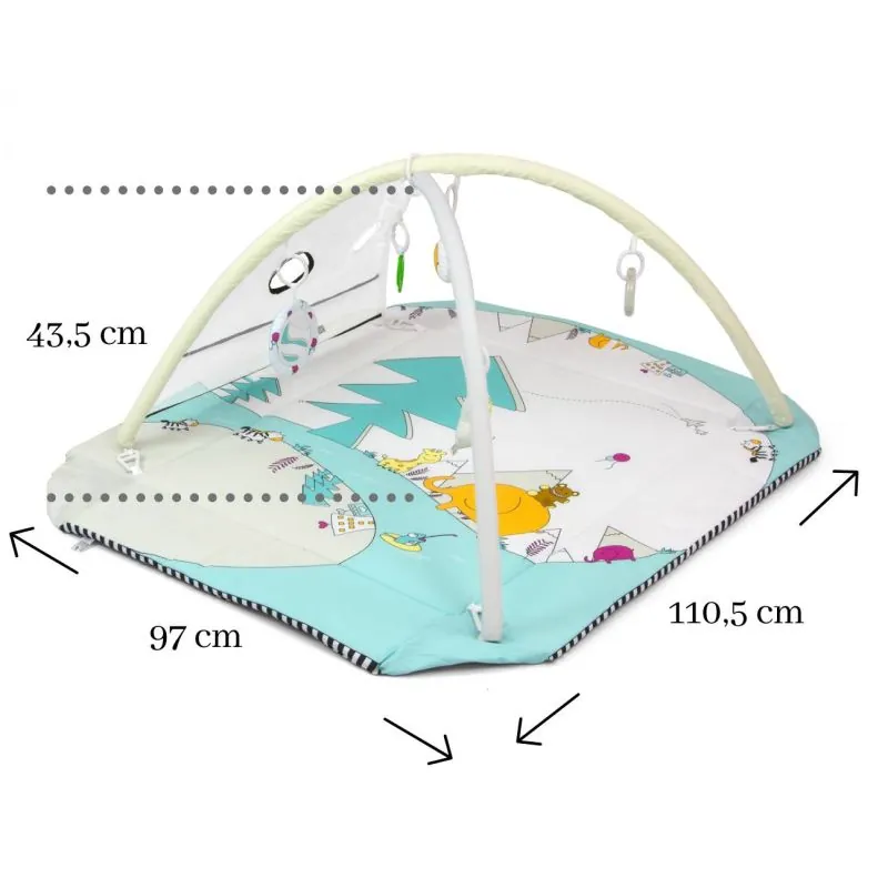 Paklājiņš ir izveidots mazuļa fiziskai, sensorai un emocionālai attīstībai.