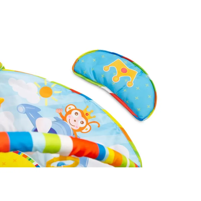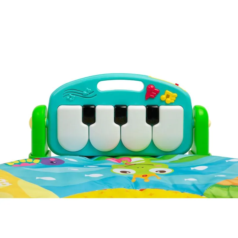 Piemērots bērniem no dzimšanas;Izgatavots no viegli tīrāma poliestera auduma ar mīkstu pildījumu;Pildījums nodrošina komfortu;Komplektā ir spilvens, kas nodrošina komfortu spēlējot un guļot;Piekarināmas sensorās rotaļlietas, kas veicina bērna attīstību un piesaista uzmanību;Lielākā paklājiņa atrakcija - liela muzikālā klaviatūra;Ir četri lieli pogas, kas rada skaņas, kā arī pogas, lai mainītu to skaņas uz 1 no 3 veidiem;Paklājiņā ir poga, kas ieslēdz melodijas ar divu līmeņu skaņas vadību;Muzikālā klaviatūra darbojas ar 2 AA baterijām (baterijas komplektā nav).