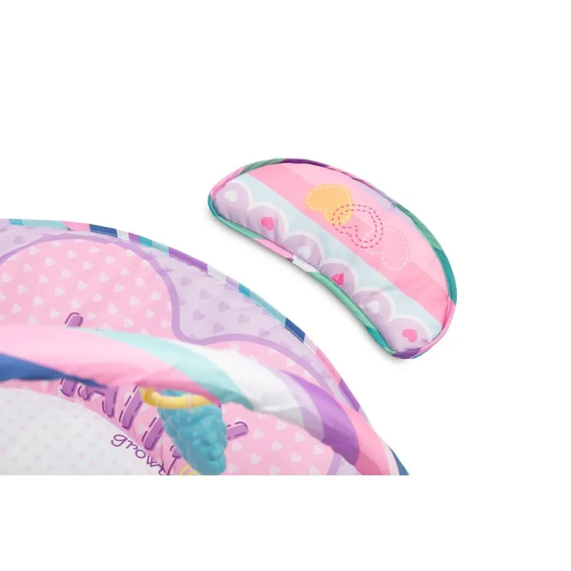Piemērots bērniem no dzimšanas;Izgatavots no viegli tīrāma poliestera auduma ar mīkstu pildījumu;Pildījums nodrošina komfortu;Komplektā ir spilvens, kas nodrošina komfortu spēlējot un guļot;Piekarināmas sensorās rotaļlietas, kas veicina bērna attīstību un piesaista uzmanību;Lielākā paklājiņa atrakcija - liela muzikālā klaviatūra;Ir četri lieli pogas, kas rada skaņas, kā arī pogas, lai mainītu to skaņas uz 1 no 3 veidiem;Paklājiņā ir poga, kas ieslēdz melodijas ar divu līmeņu skaņas vadību;Muzikālā klaviatūra darbojas ar 2 AA baterijām (baterijas komplektā nav).