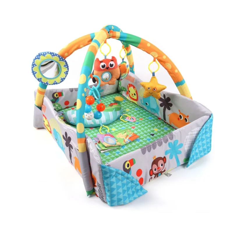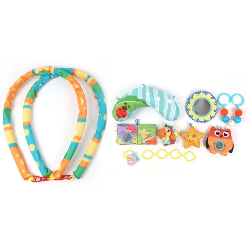 Katra rotaļlieta ir noņemama un lietojama atsevišķi. Tās piedāvā dažādas tekstūras, skaņas un krāsas, lai palīdzētu attīstīt jūsu bērna sajūtas un motorisko koordināciju;
