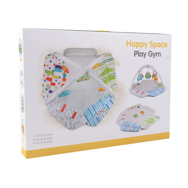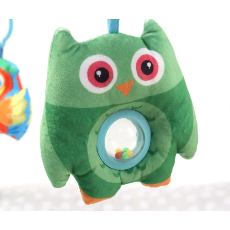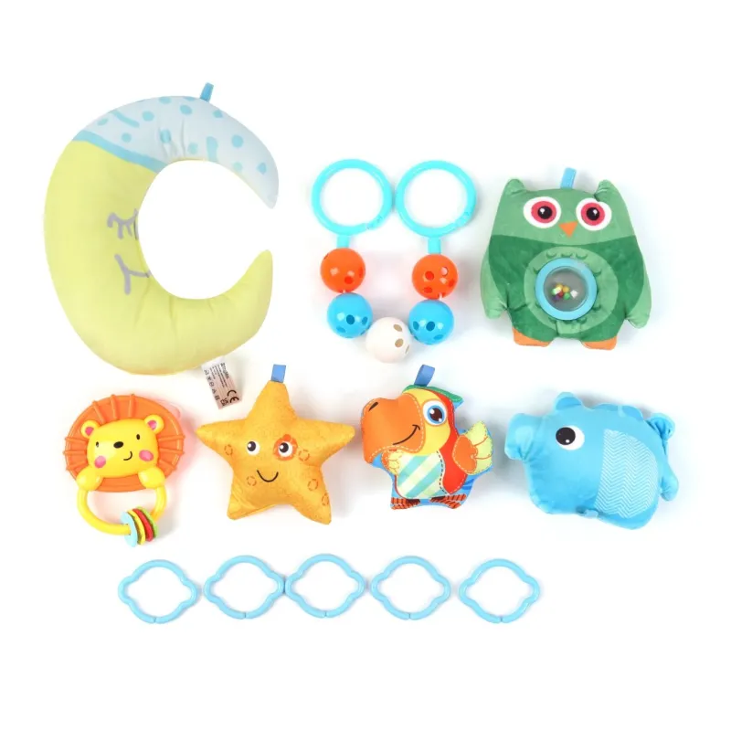 Mīksts daudzkrāsains paklājiņš;2 elastīgas lokas;5 rotaļīgi dzīvnieku piekariņi ar rokturiem;Garens grabulis ar rokturiem;Pusmēness formas spilvens;Vecuma grupa: 0 mēn.+Atbilst Eiropas drošības standartiem.
