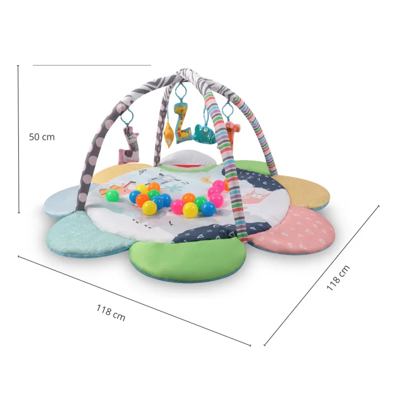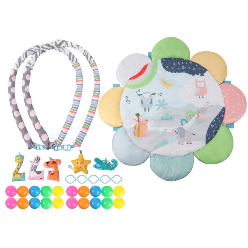 Šis spēļu paklājiņš palīdz attīstīt satveršanu un formu atpazīšanu. Tas veicina aktīvu un radošu spēli. Piekariņi attīsta redzes un taustes sajūtas, kā arī motorisko koordināciju.