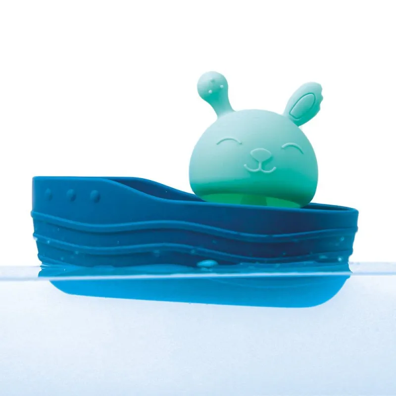 Silikona jūras trusītis ar savu laiviņu aicina mazulīšus izpētīt ūdeni;