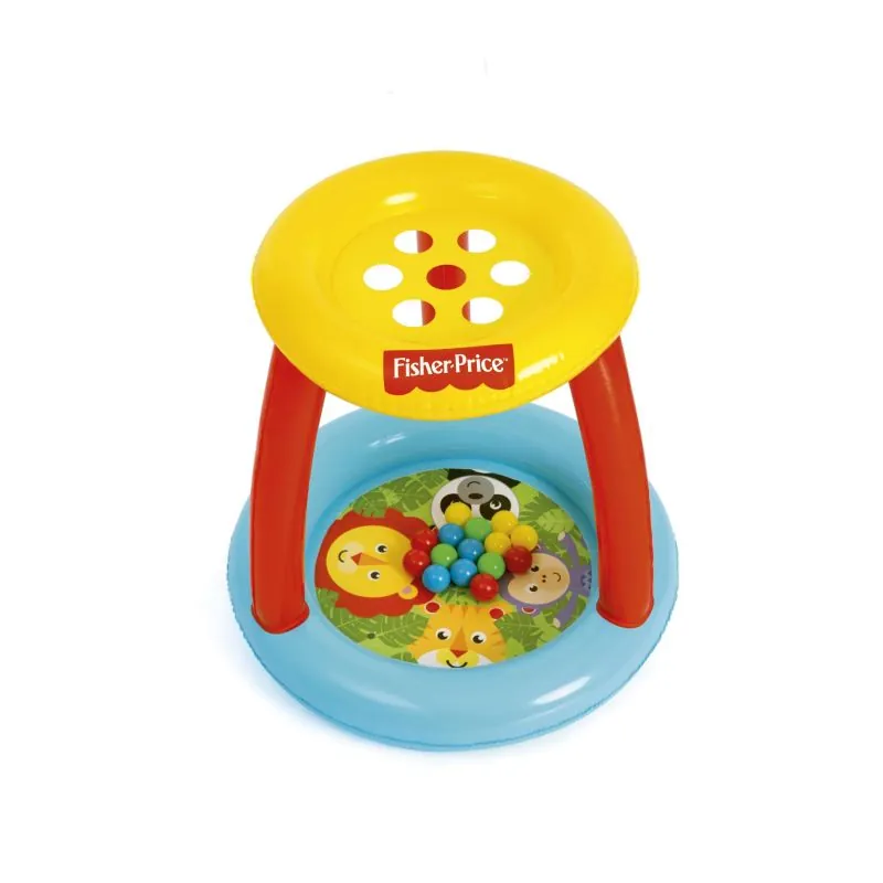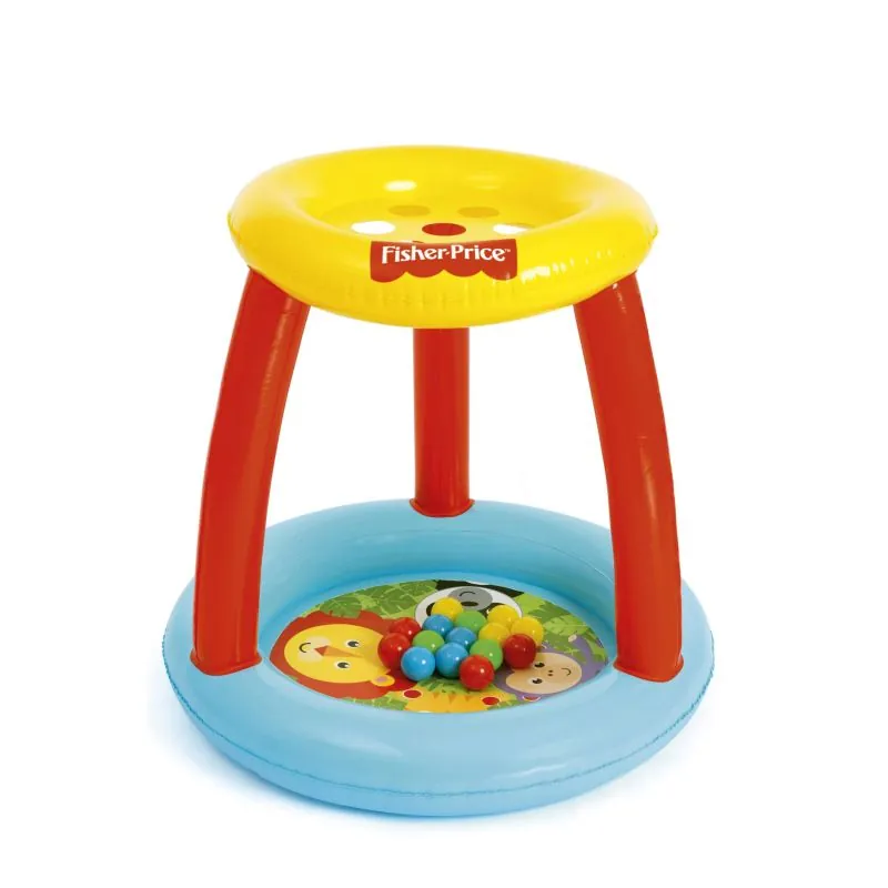 Krāsains piepūšamais baseins ir ar mīkstu piepūšamu dibenu un jumtiņu ar caurumiņiem, caur kuriem bērns var mest bumbiņas. Šī spēle ne tikai ir jautra, bet arī palīdz attīstīt roku-acu koordināciju.Burvīgais baseins ir izgatavots no īpaši izturīga un bojājumiem izturīga vinila materiāla, kas nodrošina tā ilgu lietošanu. Bumbiņu baseins ir izgatavots saskaņā ar Fisher Price licenci, kas garantē tā lielisko kvalitāti.Izmēri: 89 x 84 cm,Sastāvs: PVC,Komplektā: piepūšamais baseins ar jumtiņu, 15 krāsainas bumbiņas, līmlente,paredzēts bērniem no 2 gadu vecuma.