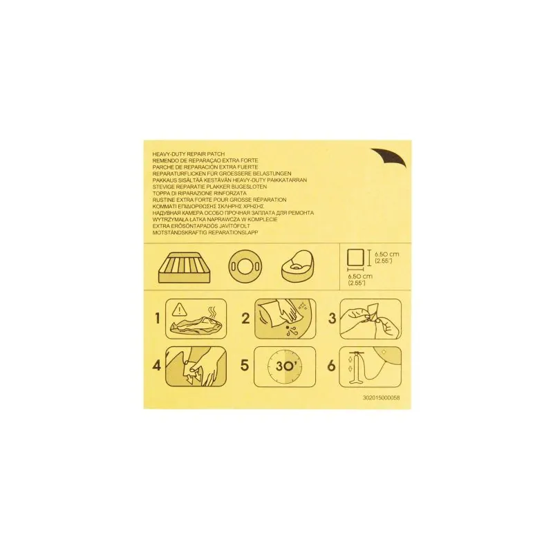 Bestway® izturīgie piepūšamo izstrādājumu remonta ielāpi ir ātrs un vienkāršs veids, kā salabot piepūšamo izstrādājumu bojājumus.