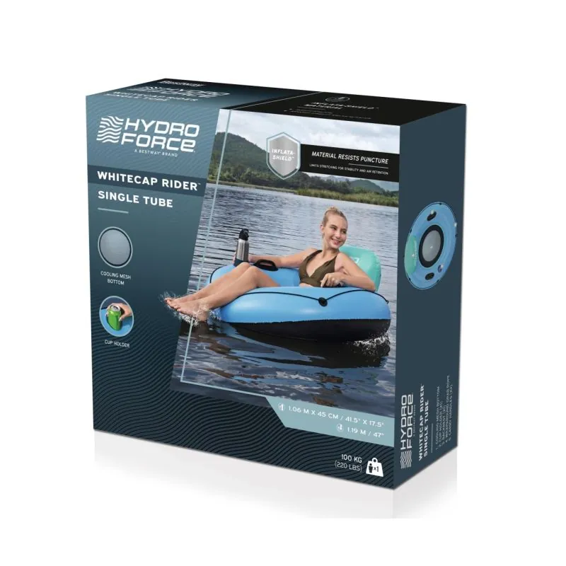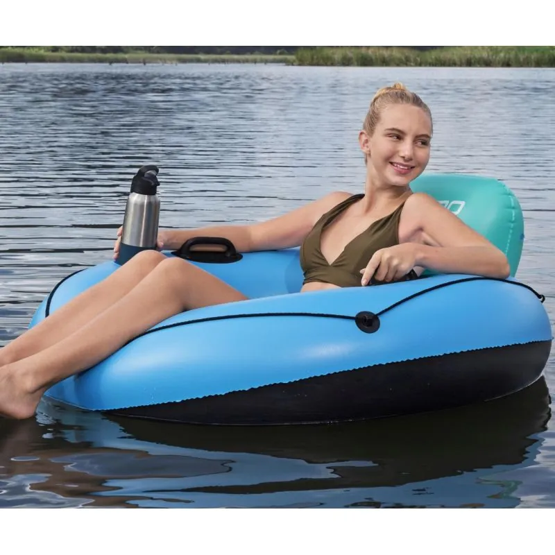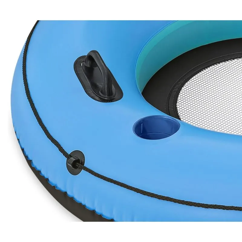 Materiāls izturīgs pret caurduršanu un ierobežo gaisa izplūdi;Ērts atzveltne nodrošina komfortu;Krūzes turētājs;Sēžamā daļa izklāta ar tīklu;Ātrās izlaišanas vārsti;2 rokturi turēšanai;Ap riteni apvīta virve;Iztur svaru līdz 150 kg.