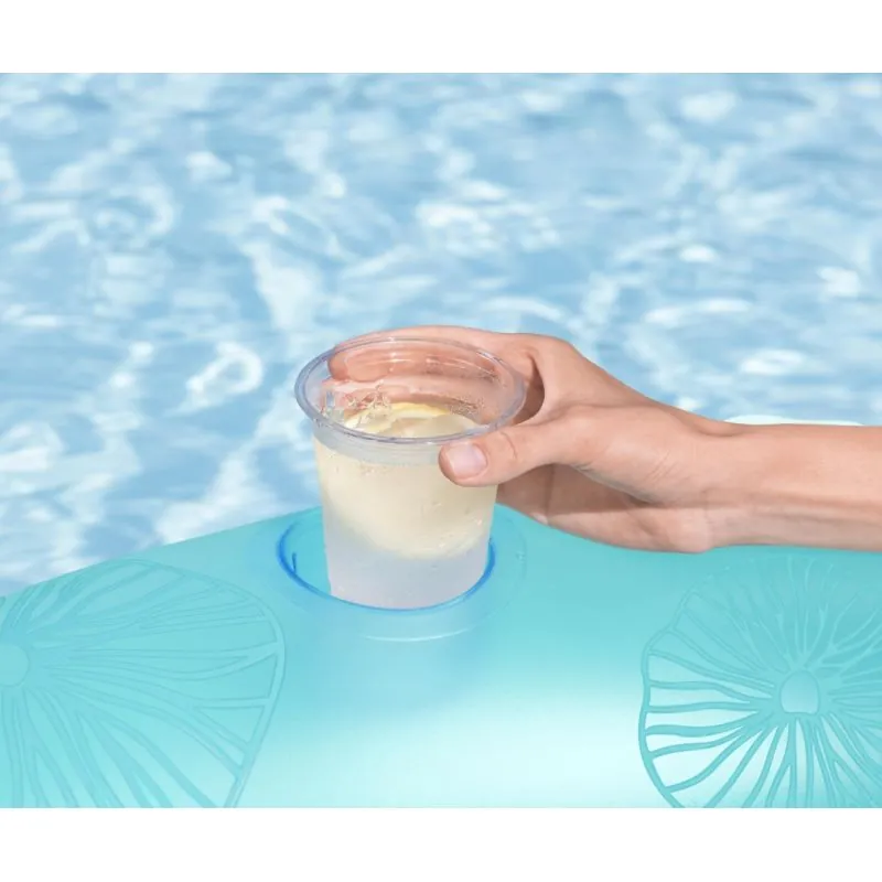 Skaists koraļļu formas atzveltne;2 ērti rokturi ērtai iekāpšanai un izkāpšanai;Krūzes turētājs;Viegla sagatavošana lietošanai;Komplektā ir remonta plāksteris.