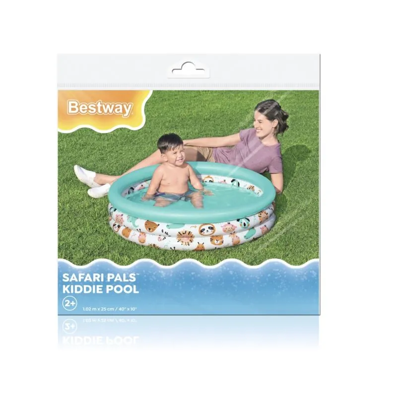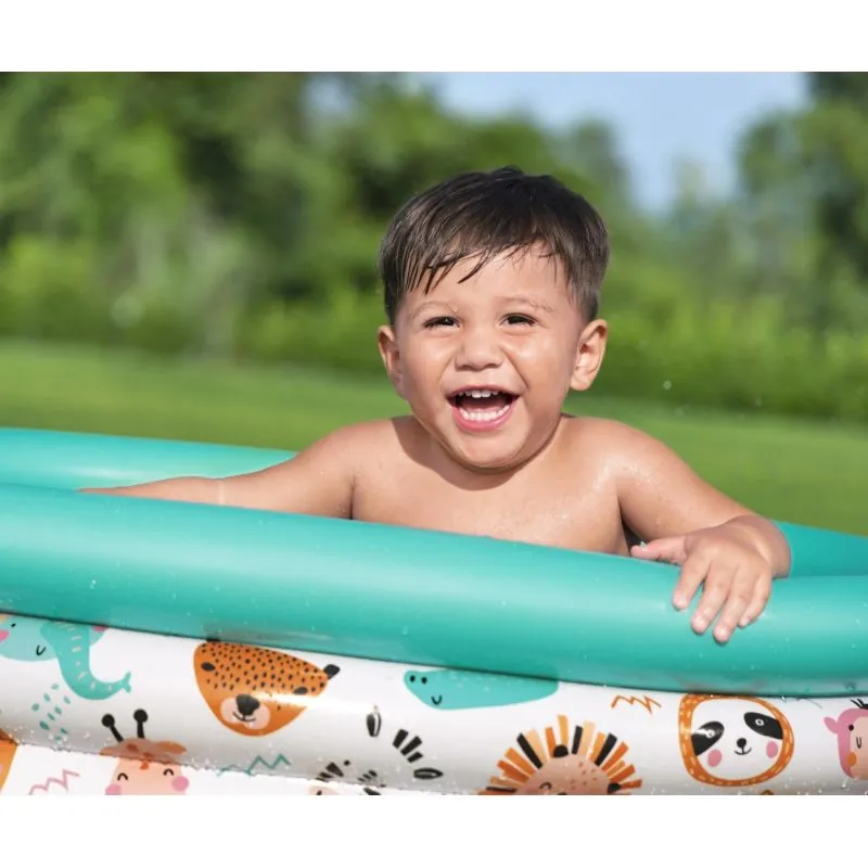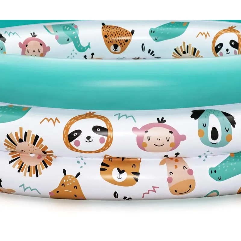Trīs piepūšamo gredzenu baseins;Krāsains safari dzīvnieku aplikācija;Baseina ietilpība 101 l.;Baseinu ārpus vasaras sezonas var izmantot kā bumbu baseinu;Viegla sagatavošana lietošanai;Piemērots bērniem no 2 gadu vecuma;Komplektā pievienots remonta plāksteris.