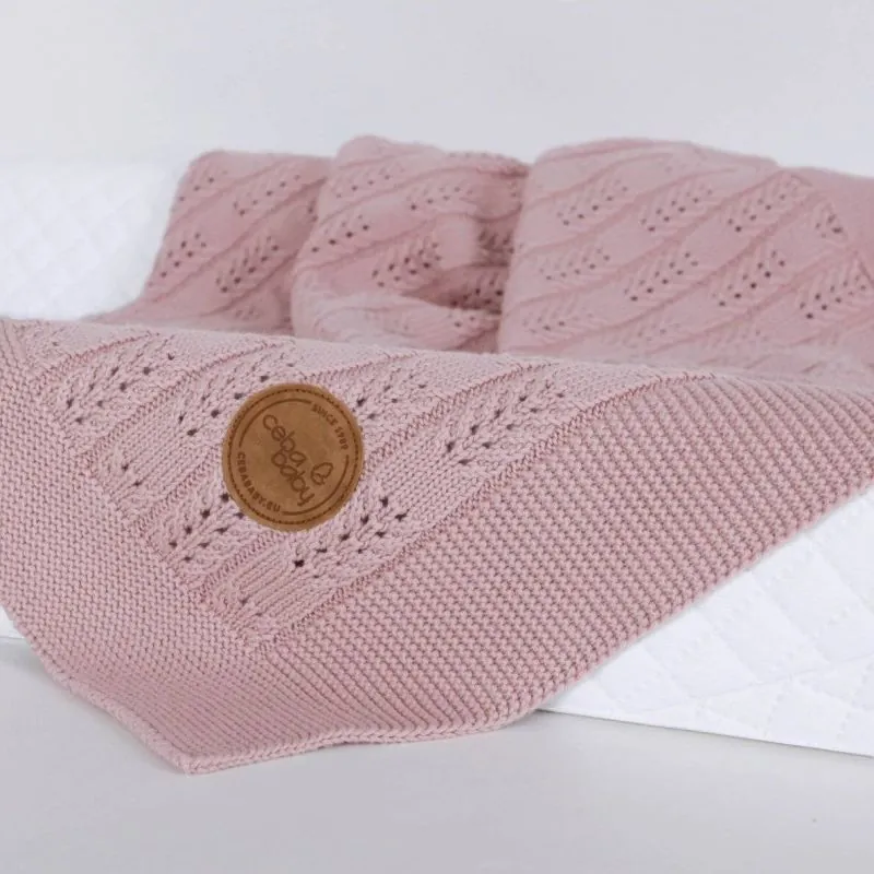 CebaBaby pledas adīts eglīte - rakstains, rozā, 90x90