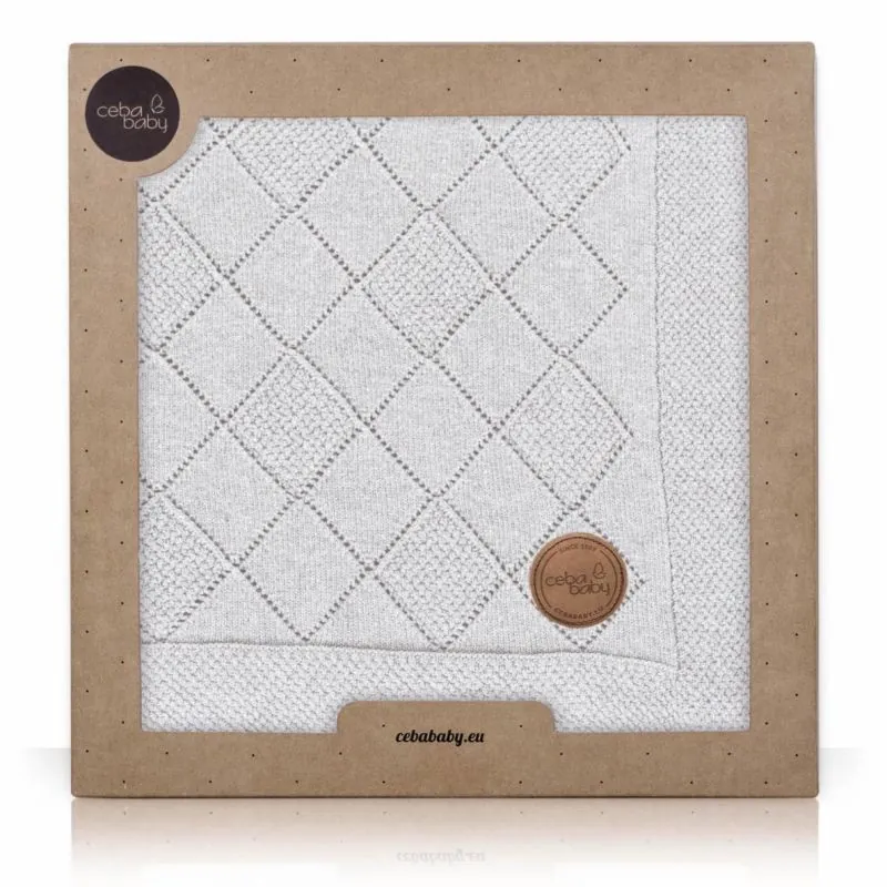 CebaBaby pleds adīts rombos - rakstains 90x90, pelēks
