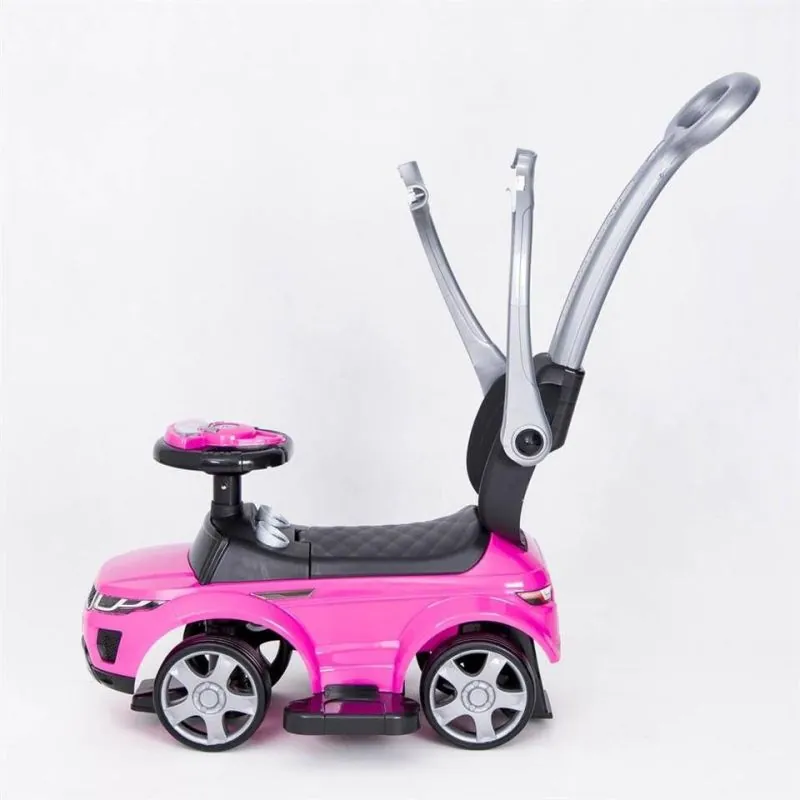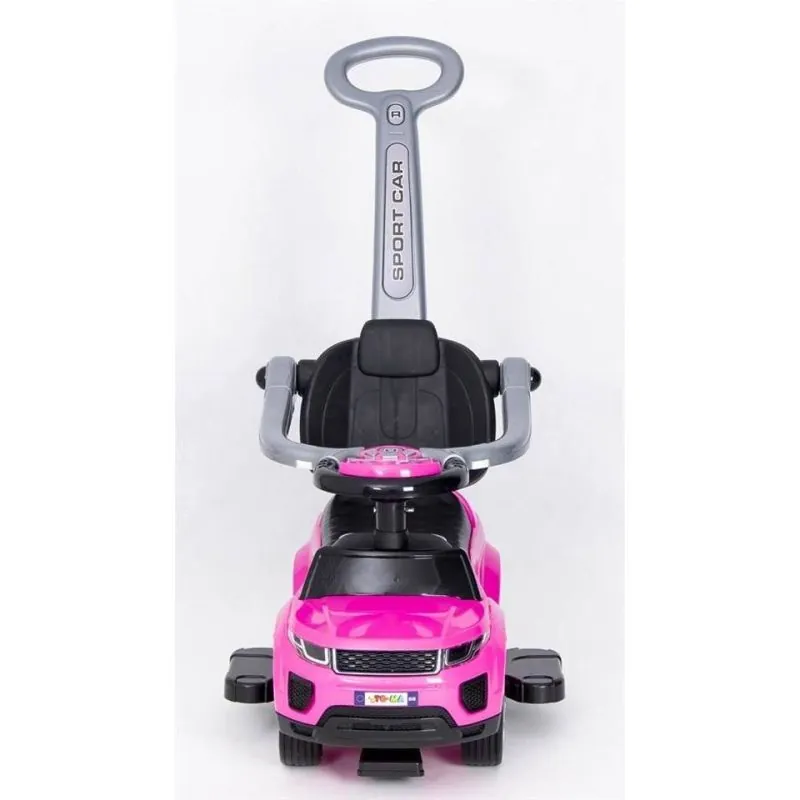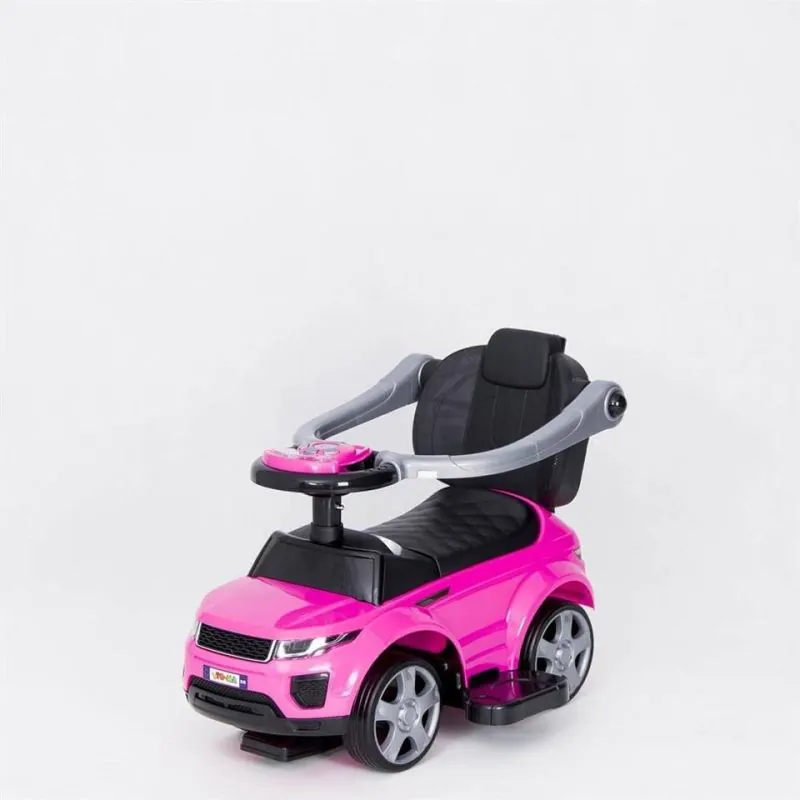 Droša, izturīga un kvalitatīva mašīna ar trim pogām, kuras nospiežot, mašīna izdos skaņas.Šai mašīnai ir aizsardzība pret sānu un atpakaļejošu apgāšanos, kāju paliktņi un rokturis mašīnas stumšanai. Šos piederumus var noņemt, kad bērns vēlēsies braukt ar mašīnu pats.Rotaļlieta ir droša un kvalitatīva.Veicina mazuļa kustību.Augsts atzveltne nodrošina bērnam ērtu un drošu pozīciju.Rotaļlietu glabāšanas kaste.Buferi, kāju paliktni un stumšanas rokturi var noņemt;Izturīga konstrukcija nodrošina ilgu braukšanu;Var izmantot gan telpās, gan ārā;Maksimālais bērna svars: 27 kg;Paredzēts bērniem: no 24 mēnešiem;Izmēri: 75x44x82 cm.