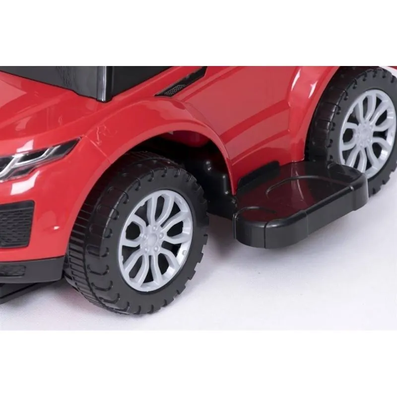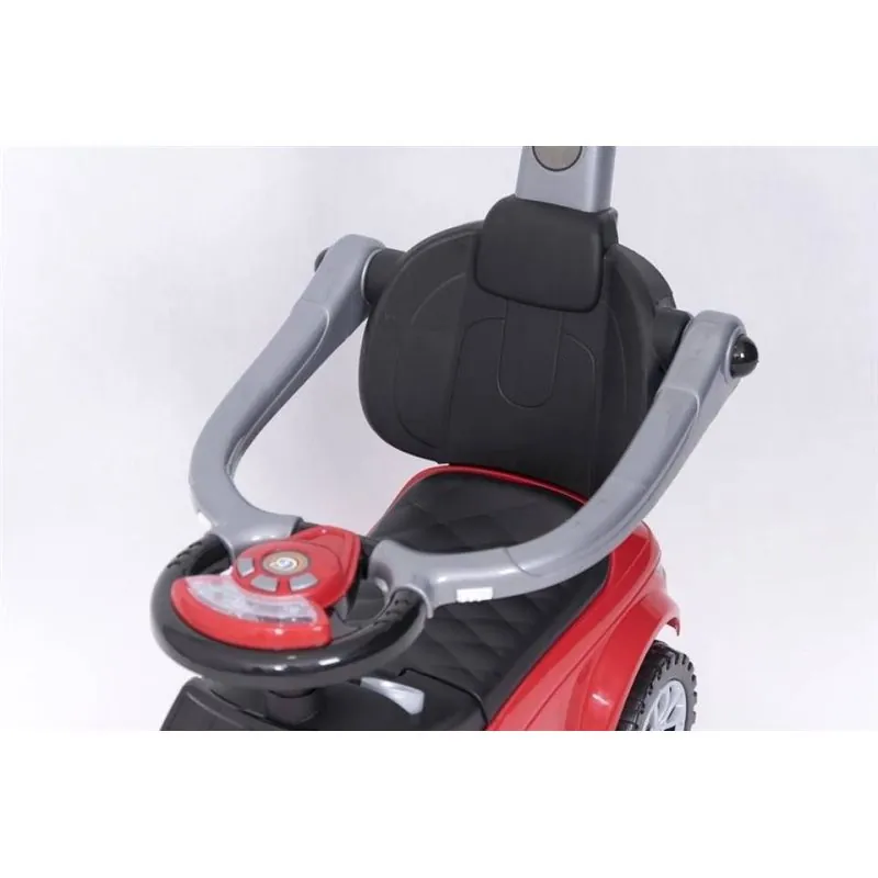 Ši mašinėlė turi apsaugas nuo šoninio ir atbulinio apvirtimo, kojyčių padėkliukus bei rankenėlę mašnėlės stūmimui. Šiuos priedus bus galima nuimti, kai vaikas norės važinėtis su mašinėle pats.