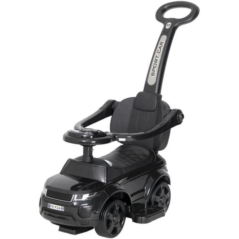 Droša, izturīga un kvalitatīva mašīnīte ar trim pogām, kuras nospiežot mašīnīte izdos skaņas.Šai mašīnītei ir aizsardzība pret sānu un atpakaļejošu apgāšanos, kājiņu paliktņi un rokturis mašīnītes stumšanai. Šos piederumus varēs noņemt, kad bērns vēlēsies braukt ar mašīnīti pats.Rotaļlieta ir droša un kvalitatīva.Veicina mazuli kustēties.Augsts atzveltne bērnam nodrošina ērtu un drošu pozīciju.Rotaļlietu glabāšanas kaste.Buferi, kāju paliktni un stumšanas rokturi var noņemt;Izturīga konstrukcija nodrošina ilgu braukšanu;Var izmantot gan telpās, gan ārā;Maksimālais bērna svars: 27 kg;Paredzēts bērniem: no 24 mēnešiem;Izmēri: 75x44x82 cm.