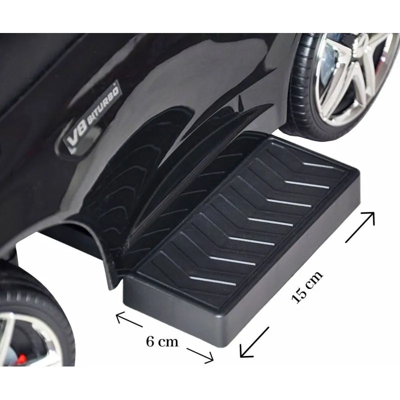 Torsionālie priekšējie riteņi, vadāmi ar rokturi.Trīs spieķu stūre ar Mercedes logotipu.Izvelkamas kāju balsti, kuras var jebkurā laikā salocīt vai izplest.Kaste zem sēdekļa.Ērts un elegants sēdeklis ar atzveltni.Metāla riteņu asis.Noņemami aizsargmargas un atzveltne.Aizsardzība pret transportlīdzekļa apgāšanos.Pudeles/krūzes turētājs.Interaktīvs stūre (3 melodijas un skaņas signāls).Vecums 12-36 mēneši.Riteņa diametrs - 14 cm.CE drošības sertifikāts.Barošana: 2 AA baterijas (nav iekļautas komplektā).