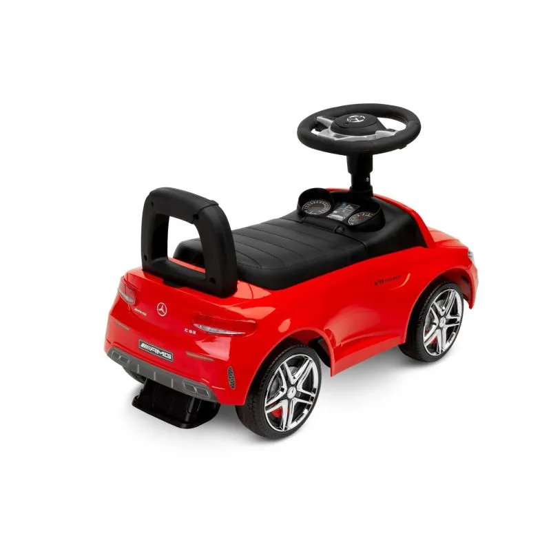 Mercedes zīmola licence garantē reālistisku izskatu un lielu uzmanību detaļām. Tajā ir stūre ar skaņas signālu un melodijām. Zem sēdekļa ir vieta mantu glabāšanai. Bērns lieliski pavada laiku, izmantojot braucamo rotaļlietu, attīsta savu motorisko koordināciju.Pagriežami priekšējie riteņi.Stūre ar pogām, ko darbina 2 AA baterijas.Plastmasas sēdeklis ar rakstu, kas imitē stepētu ādu.Plaša rotaļlietu nodalījums.Aizsardzība pret apgāšanos.